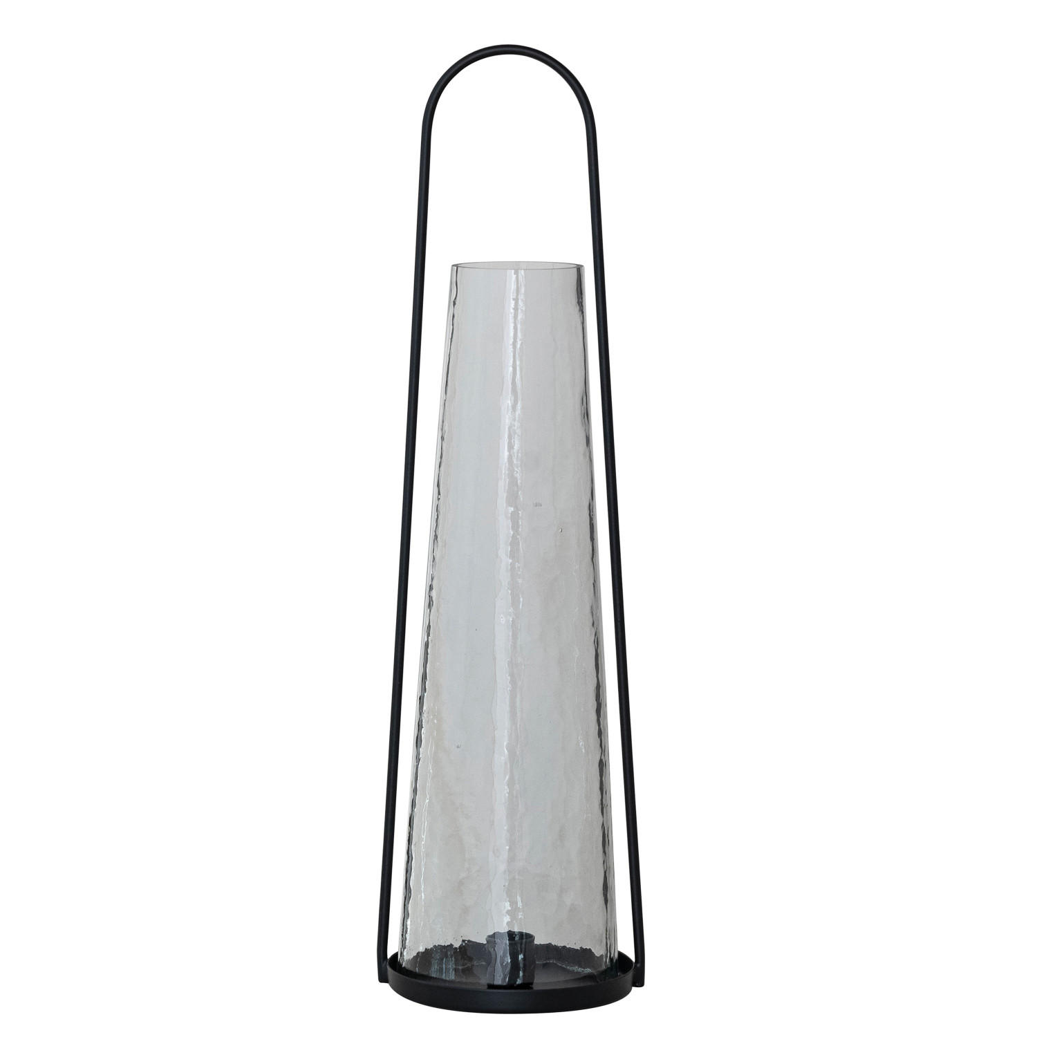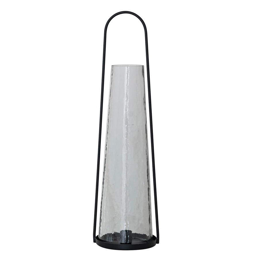 Catalog Name: 4-1/2" Round x 17-1/4"H Metal Lantern Taper Holder w/ Handle & Hammered Glass Hurricane, Black, Set of 2