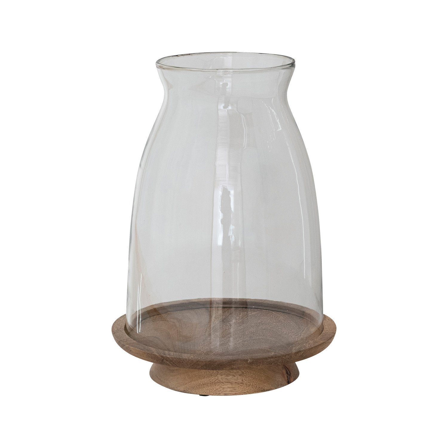 Glass Hurricane with Mango Wood Base, Natural, Set of 2