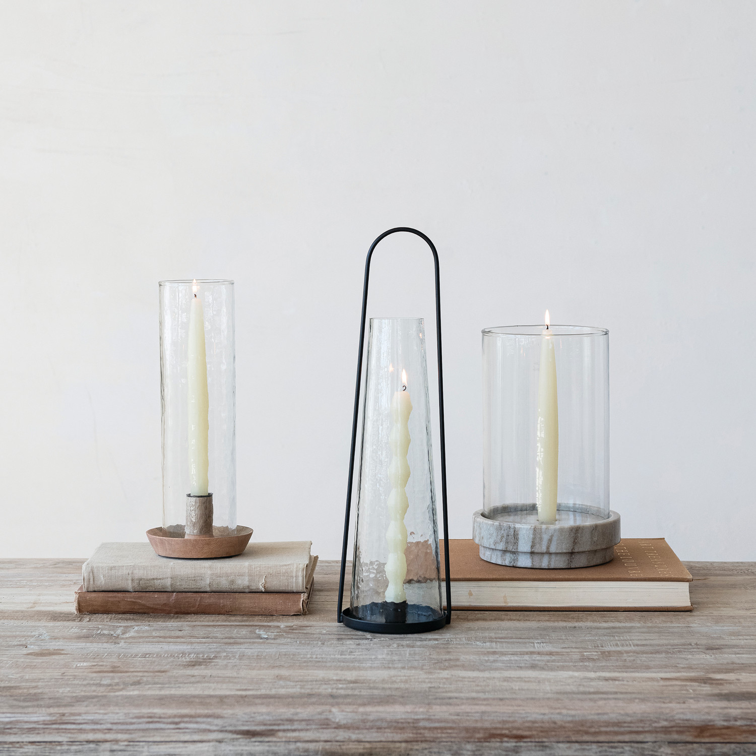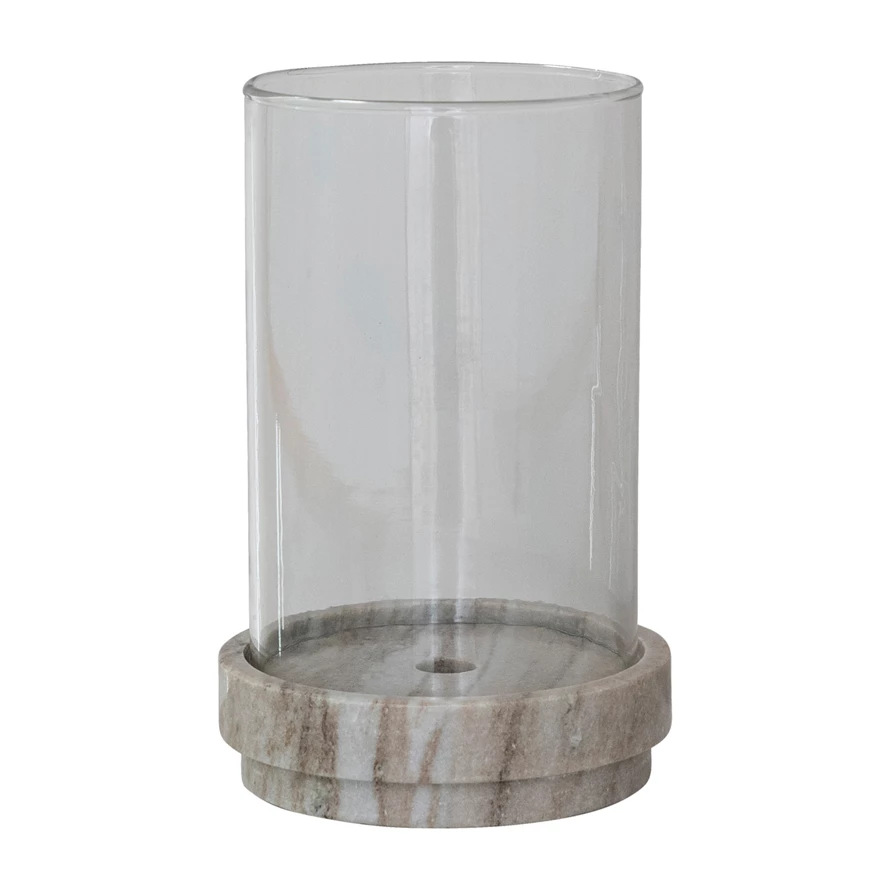 7" Round x 11"H Marble Taper/Pillar Holder with Glass Hurricane, Buff Color, Set of 2