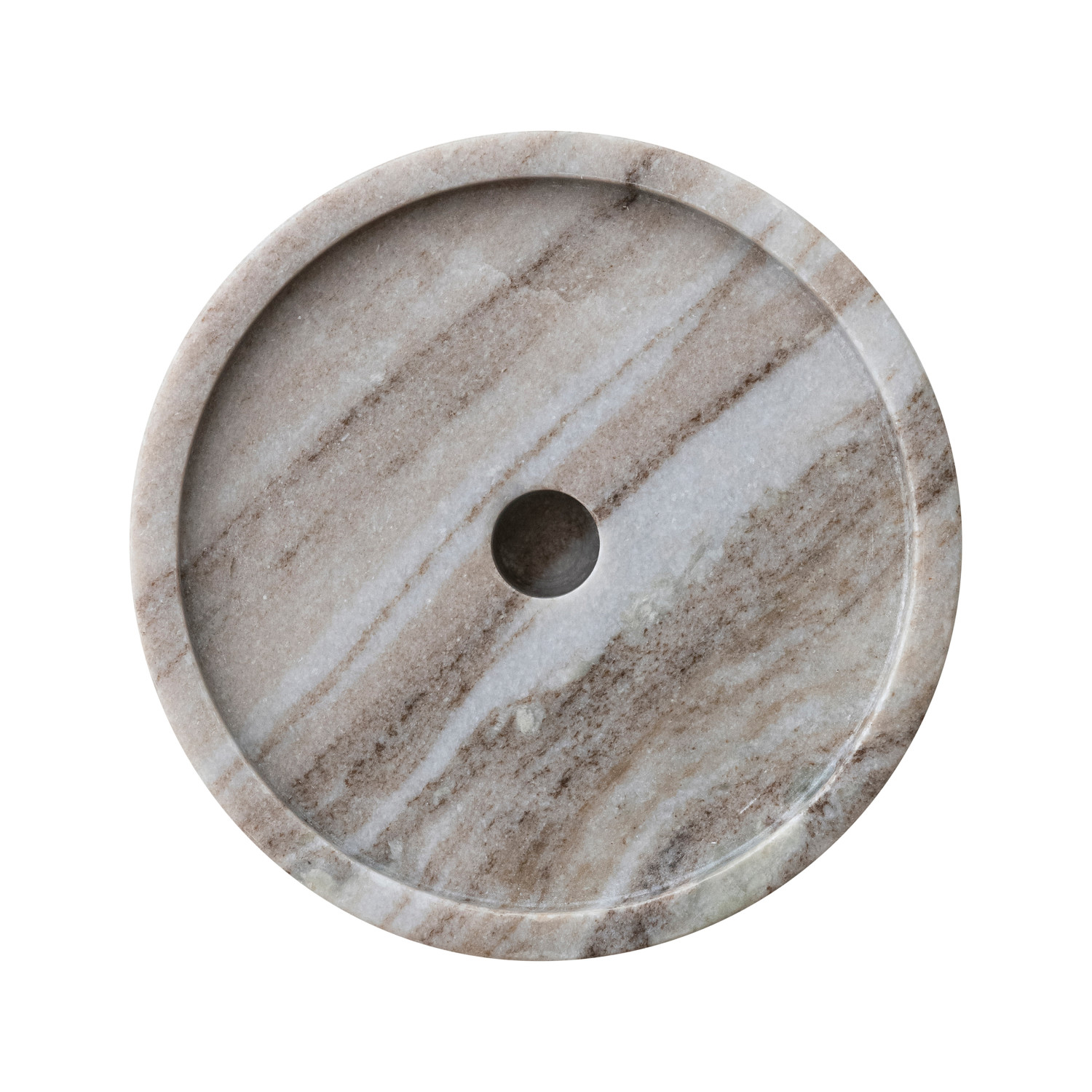 Catalog Name: 7" Round x 11"H Marble Taper/Pillar Holder w/ Glass Hurricane, Buff Color, Set of 2, Truck Ship