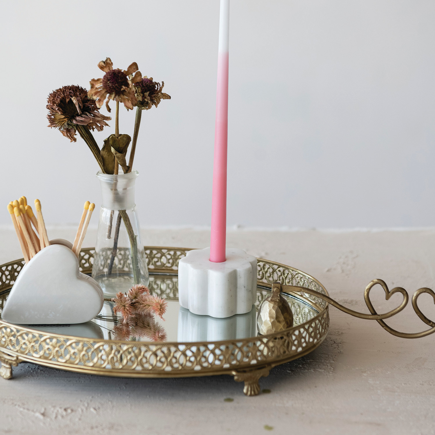 Marble Scalloped Taper Holder, White (Holds 1/2" Taper)