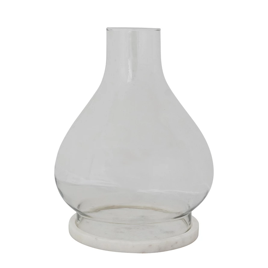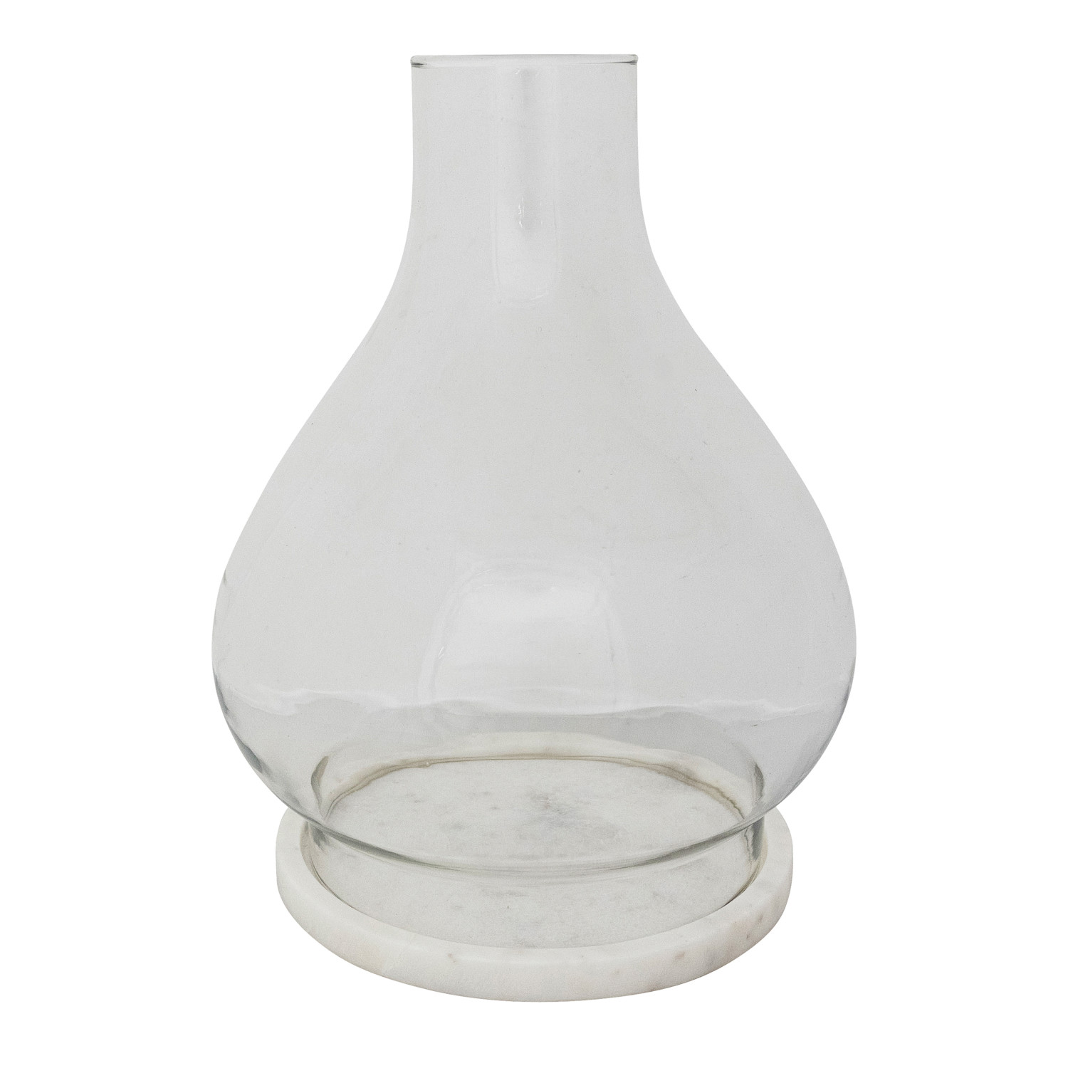 Catalog Name: 7-3/4" Round x 9-3/4"H Glass Hurricane w/ Marble Base, White, Set of 2