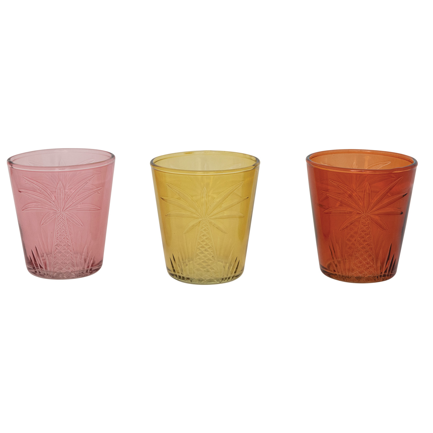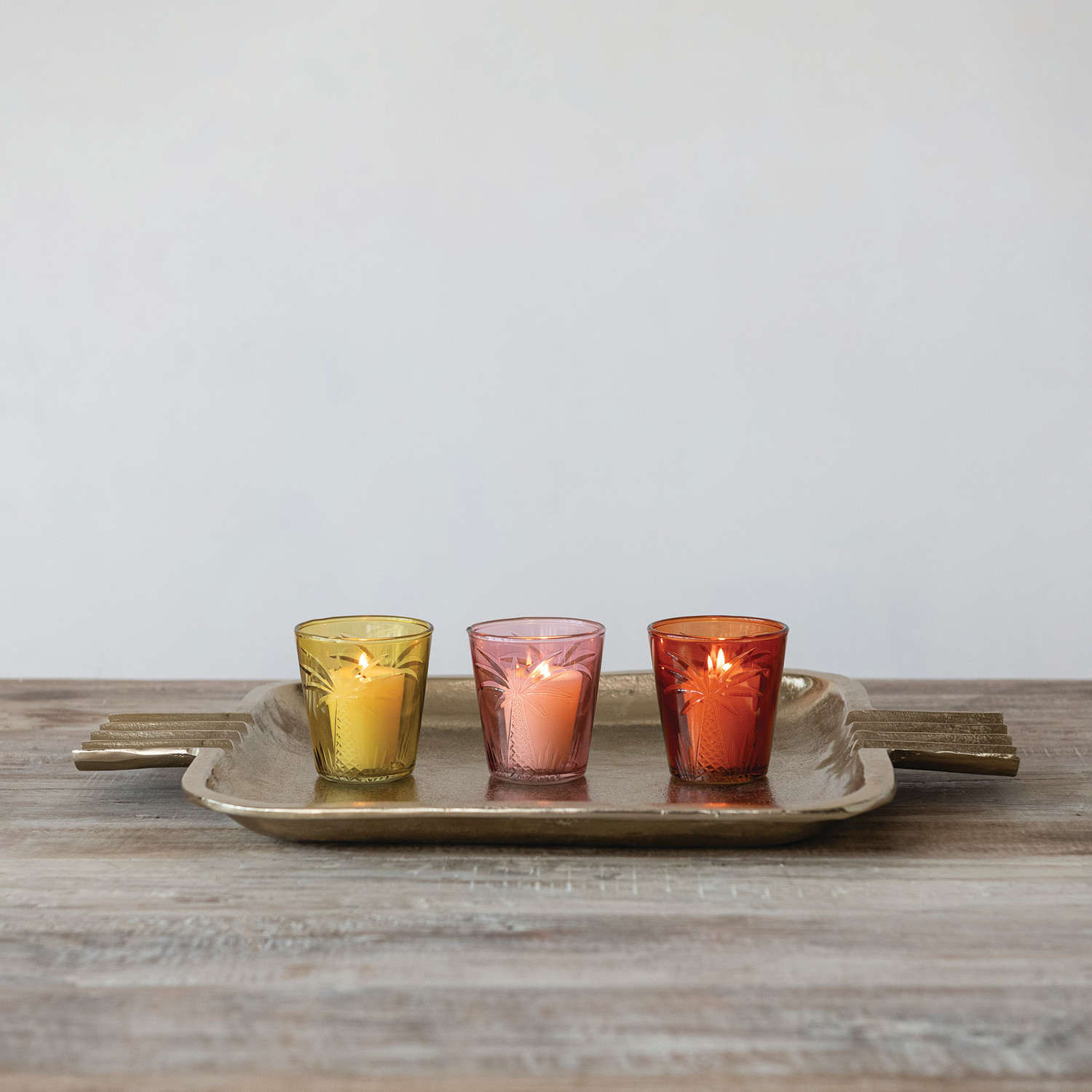 Hand-Blown Etched Glass Tealight/Votive Holder with Palm Trees, 3 Colors