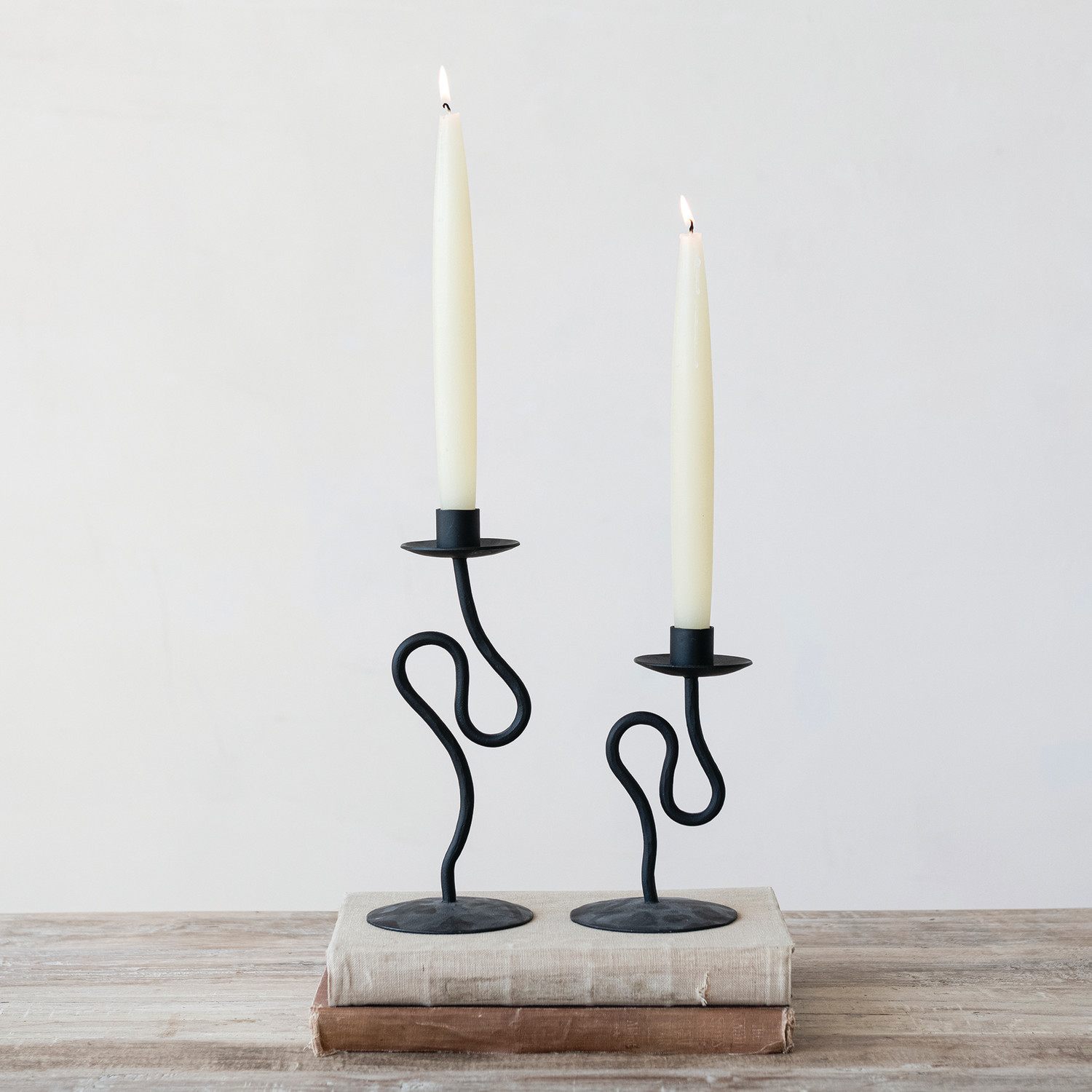 Hand-Forged Iron Abstract Shaped Taper Holder, Black