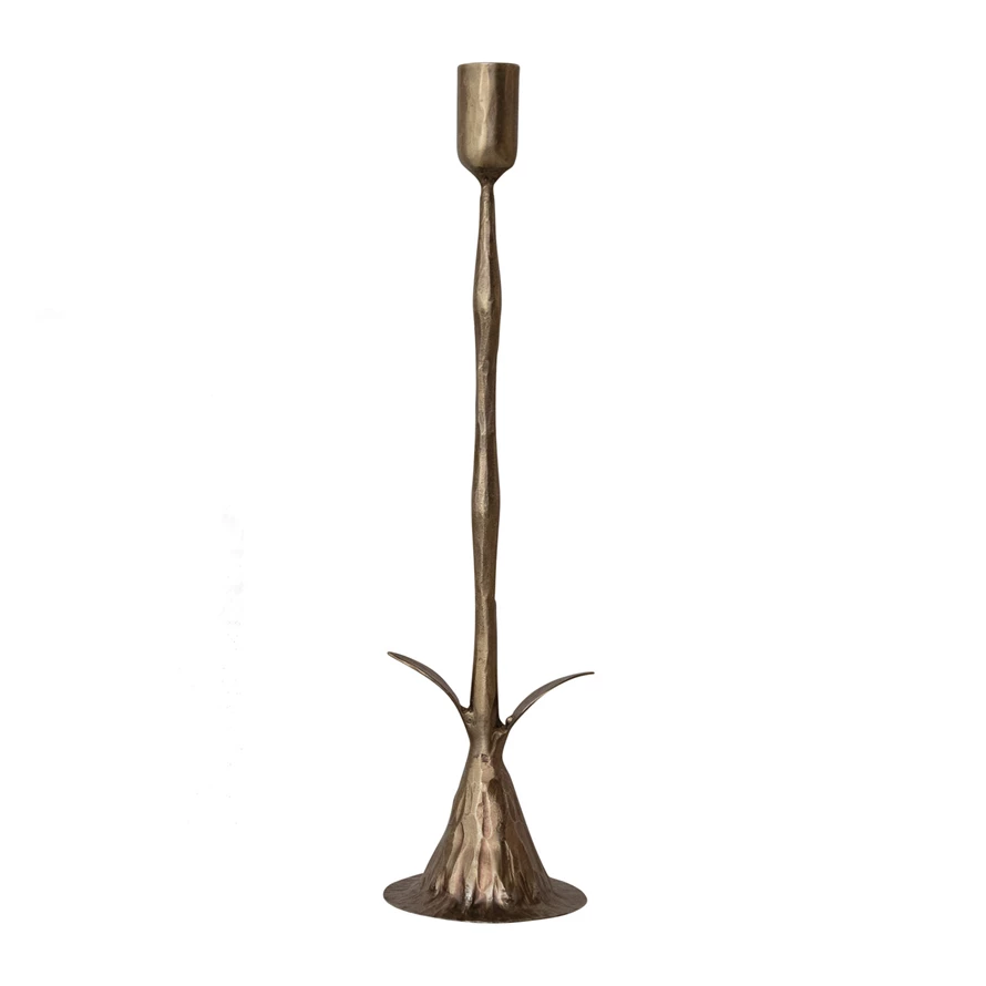 Hand-Forged Metal Stem Shaped Taper Holder, Antique Brass Finish