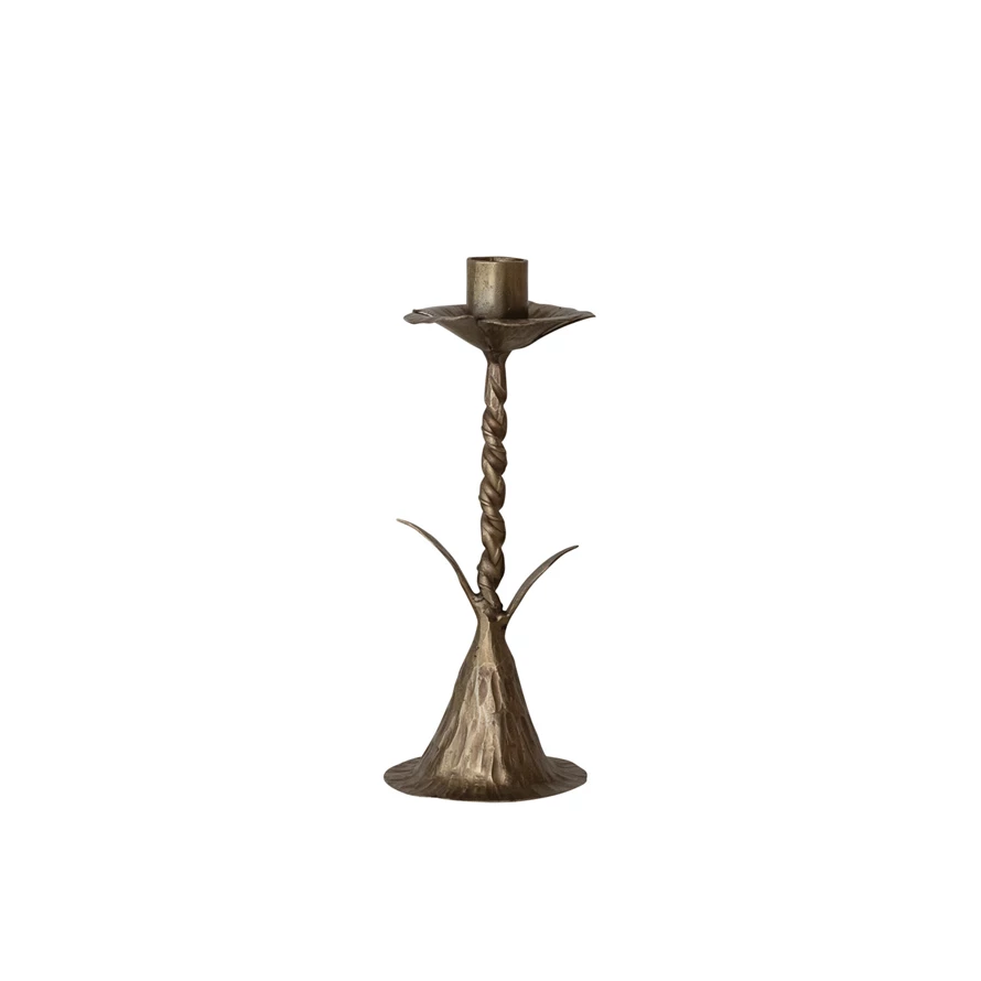 Hand-Forged Metal Twisted Stem Shaped Taper Holder, Antique Brass Finish