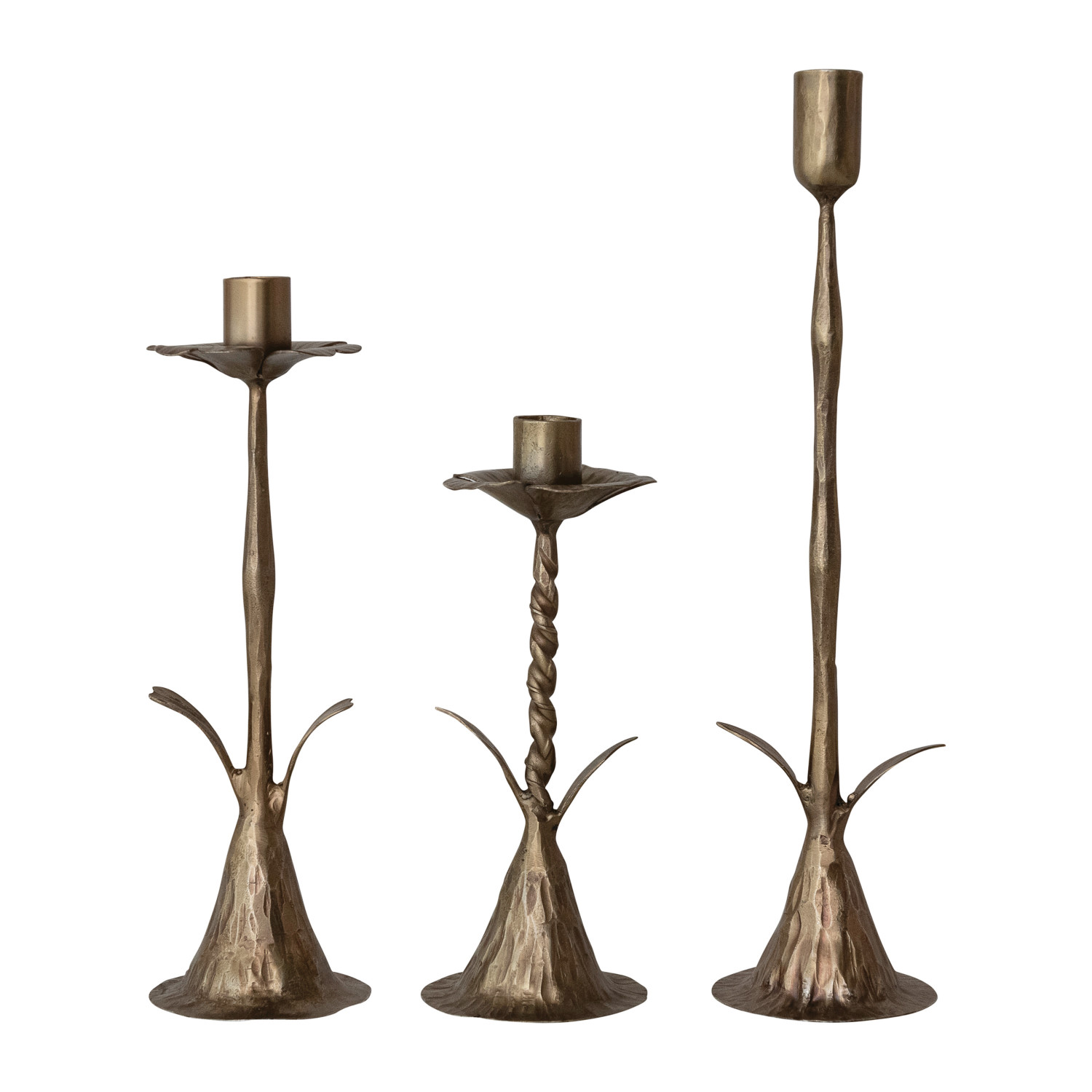 Catalog Name: 3-1/4" Round x 8-3/4"H Hand-Forged Metal Twisted Stem Shaped Taper Holder, Antique Brass Finish