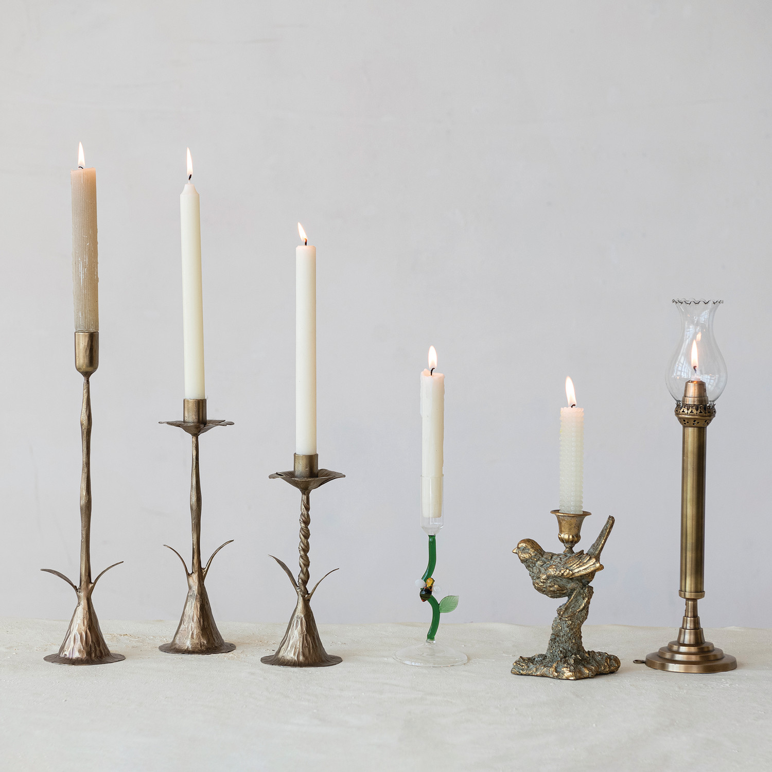 Hand-Forged Metal Twisted Stem Shaped Taper Holder, Antique Brass Finish