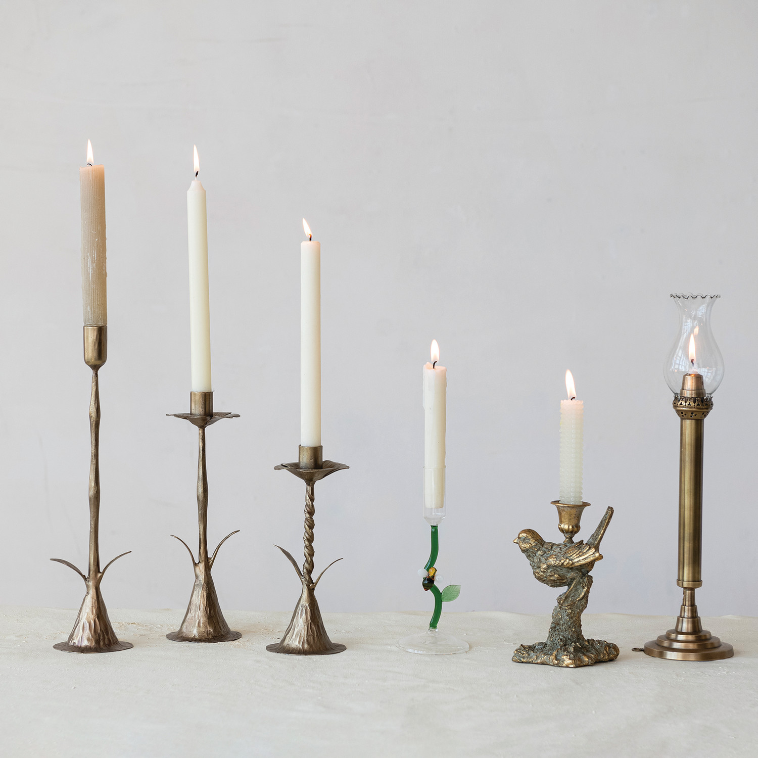 Hand-Forged Metal Stem Shaped Taper Holder, Antique Brass Finish