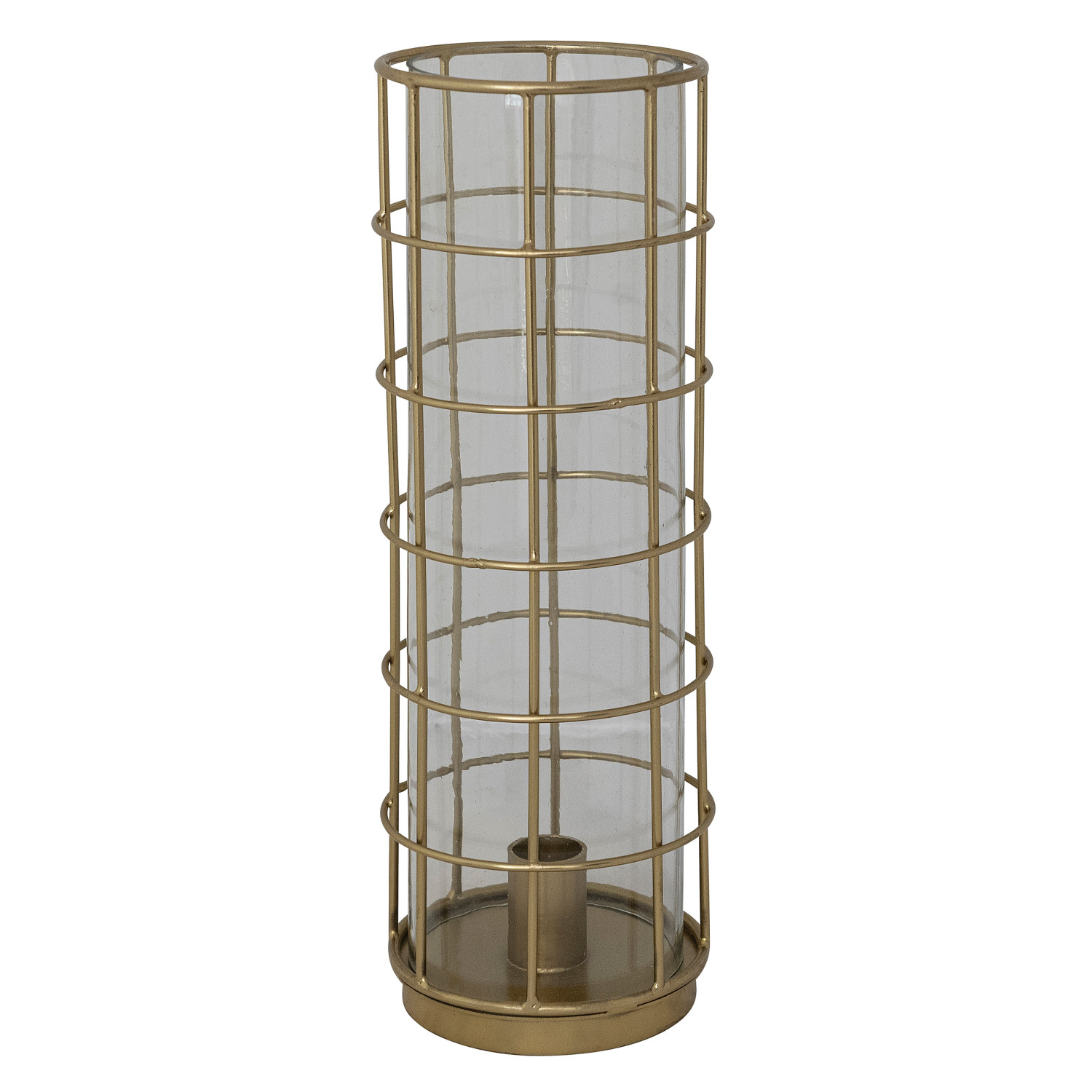 Metal Taper Holder in Metal Cage with Glass Hurricane, Gold Finish