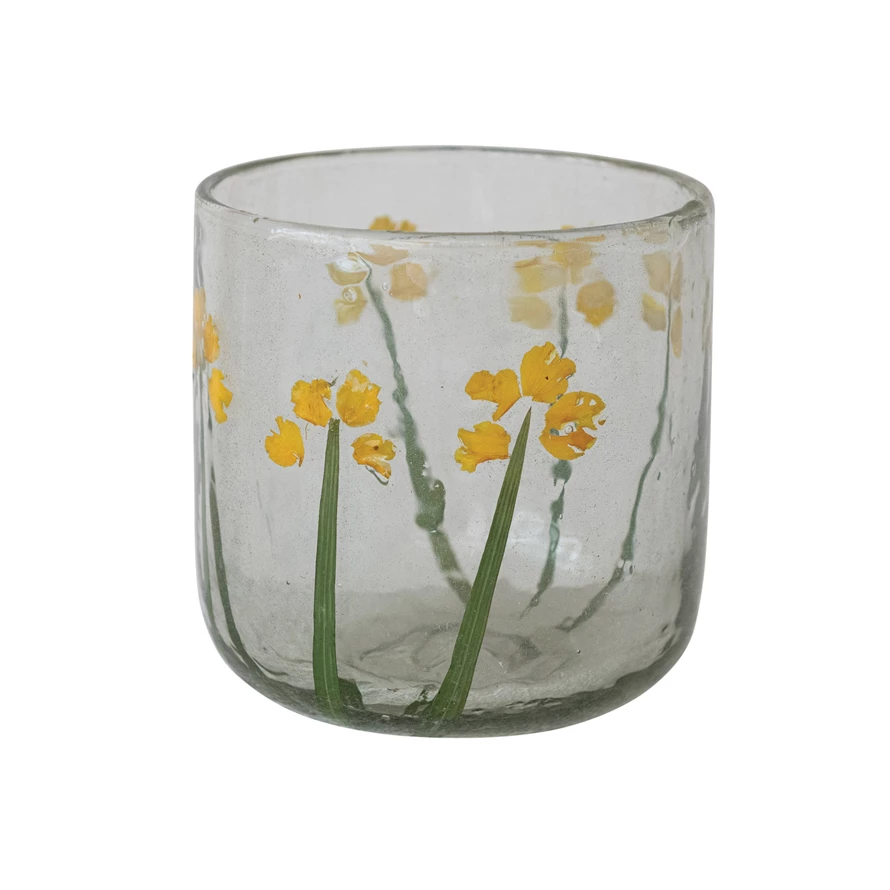 Handmade Glass Tealight/Votive Holder with Embedded Natural Silk Oak Leaves