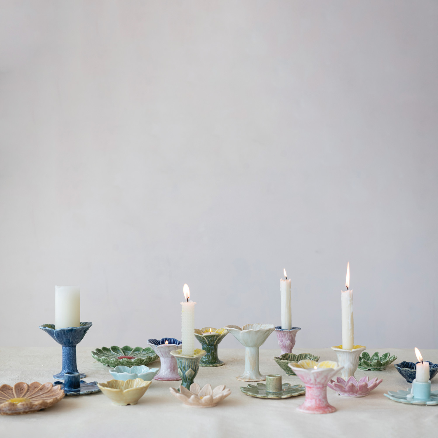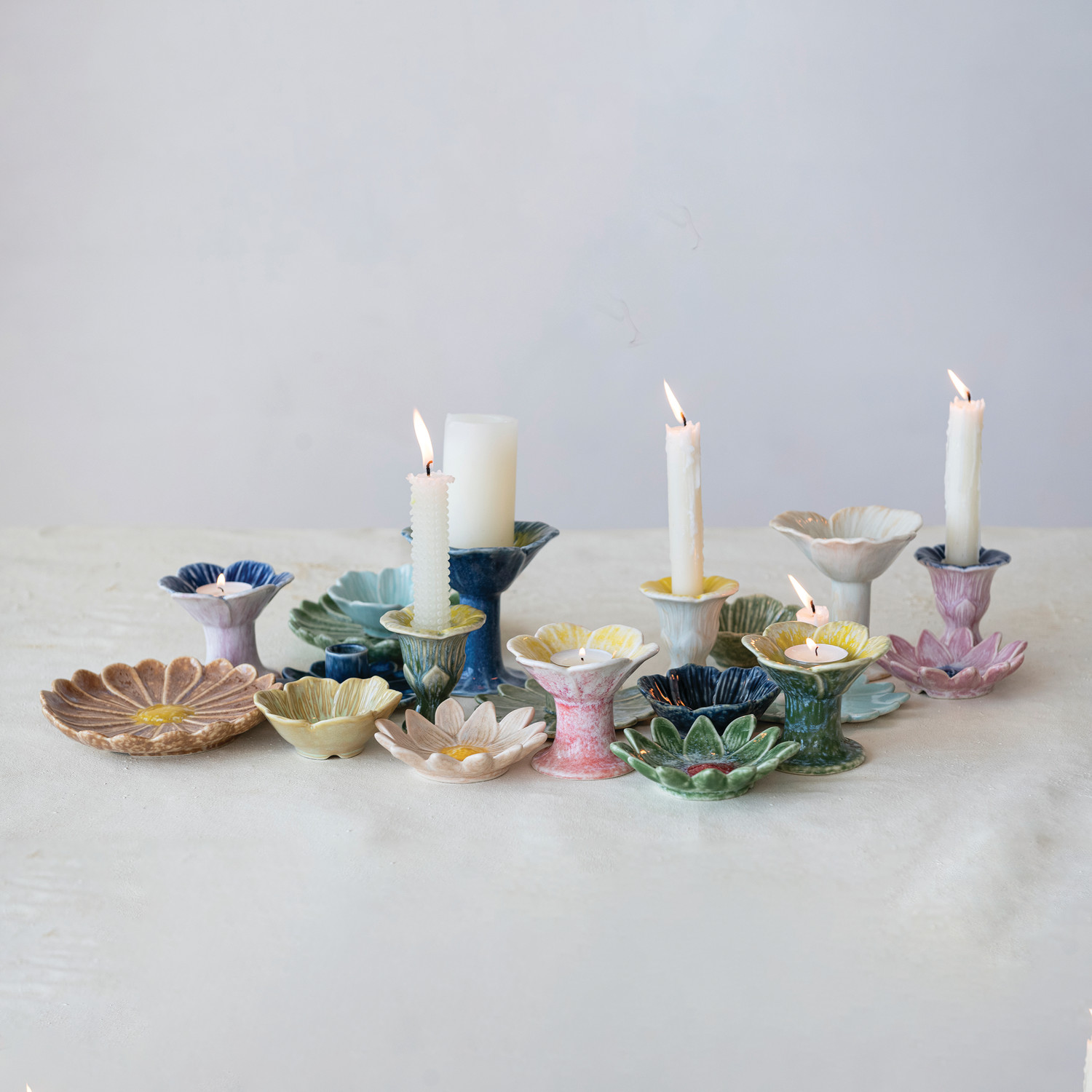 Stoneware Flower Shaped Taper Holder, 3 Styles (Each One Will Vary)