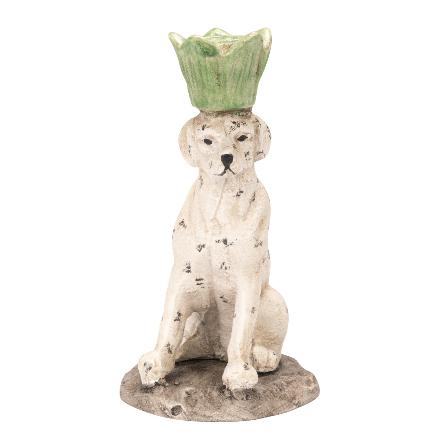 Catalog Name: 4"L x 3-3/4"W x 7"H Painted Cast Iron Dog Shaped Taper Holder, Distressed Finish, Multi Color