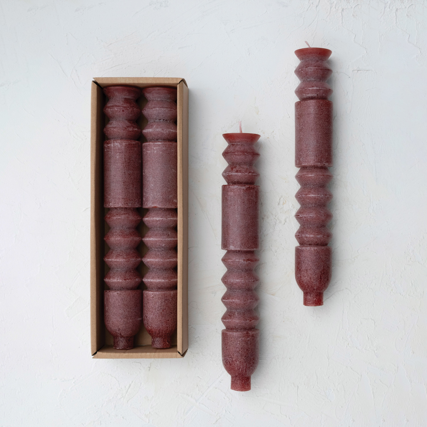 Catalog Name: 10"H Unscented Totem Taper Candles in Box, Cabernet Color, Set of 2 (Est. Burn Time 30 Hours)