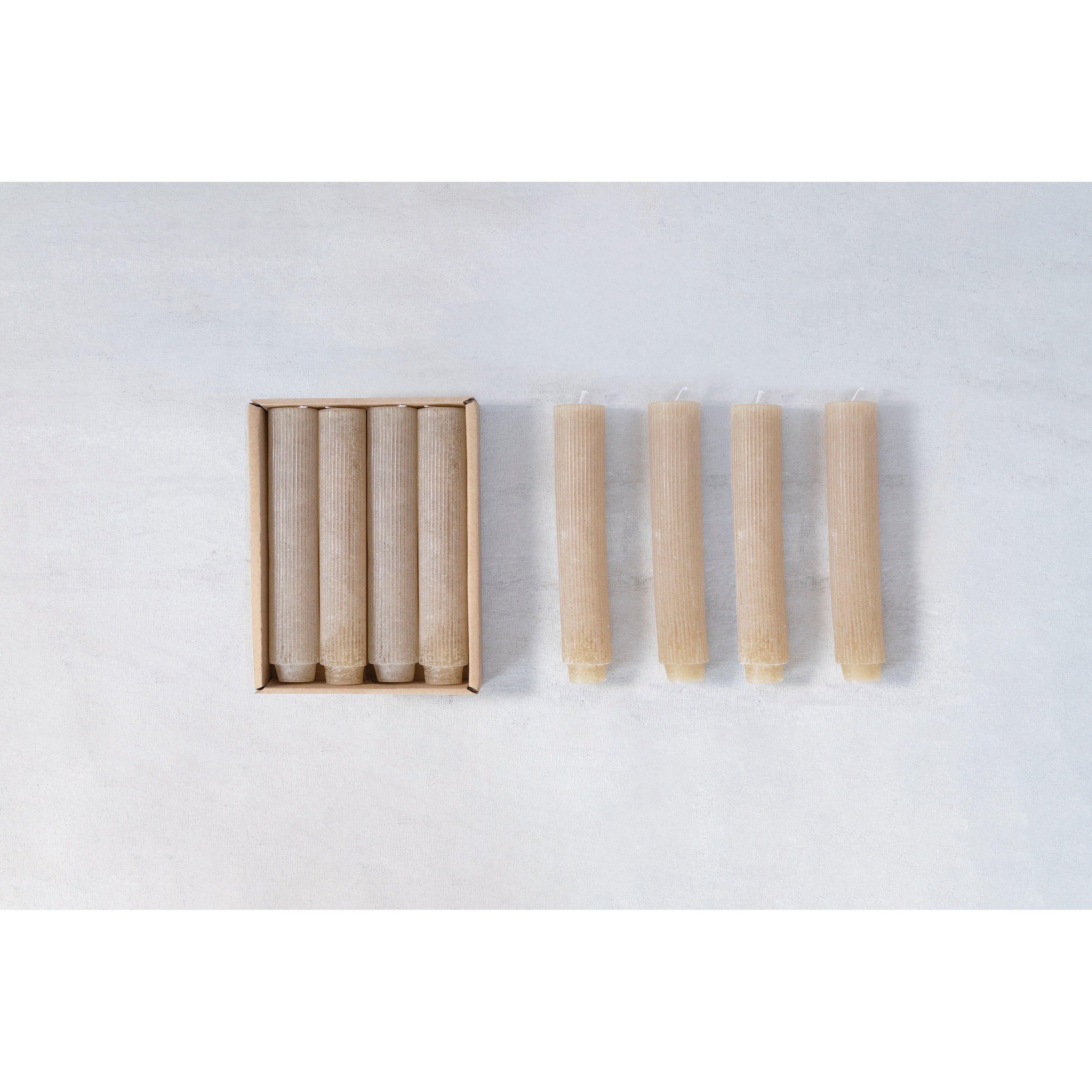 Catalog Name: 5"H Unscented Pleated Taper Candles in Box, Powder Finish, Linen Color, Set of 12 (Est. Burn Time 5 Hours)
