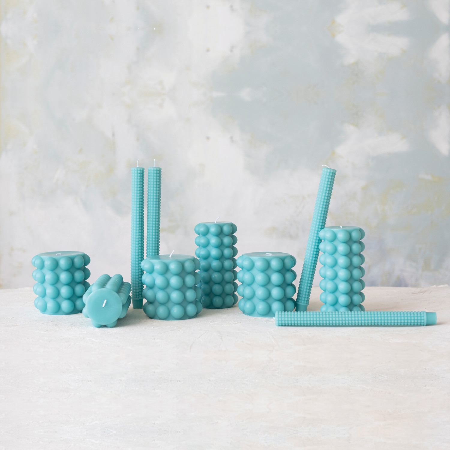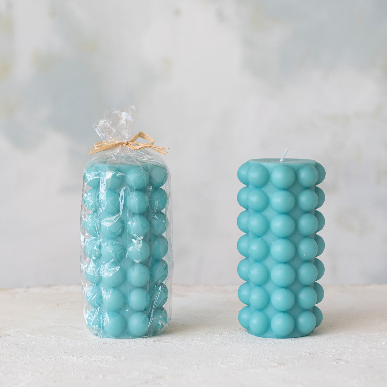 Unscented Hobnail Pillar Candle, Cyan (Approximate Burn Time 50 Hours)