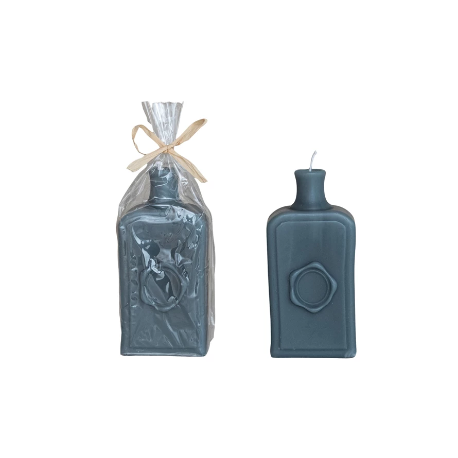 Unscented Embossed Vintage Bottle Shaped Candle, Teal
