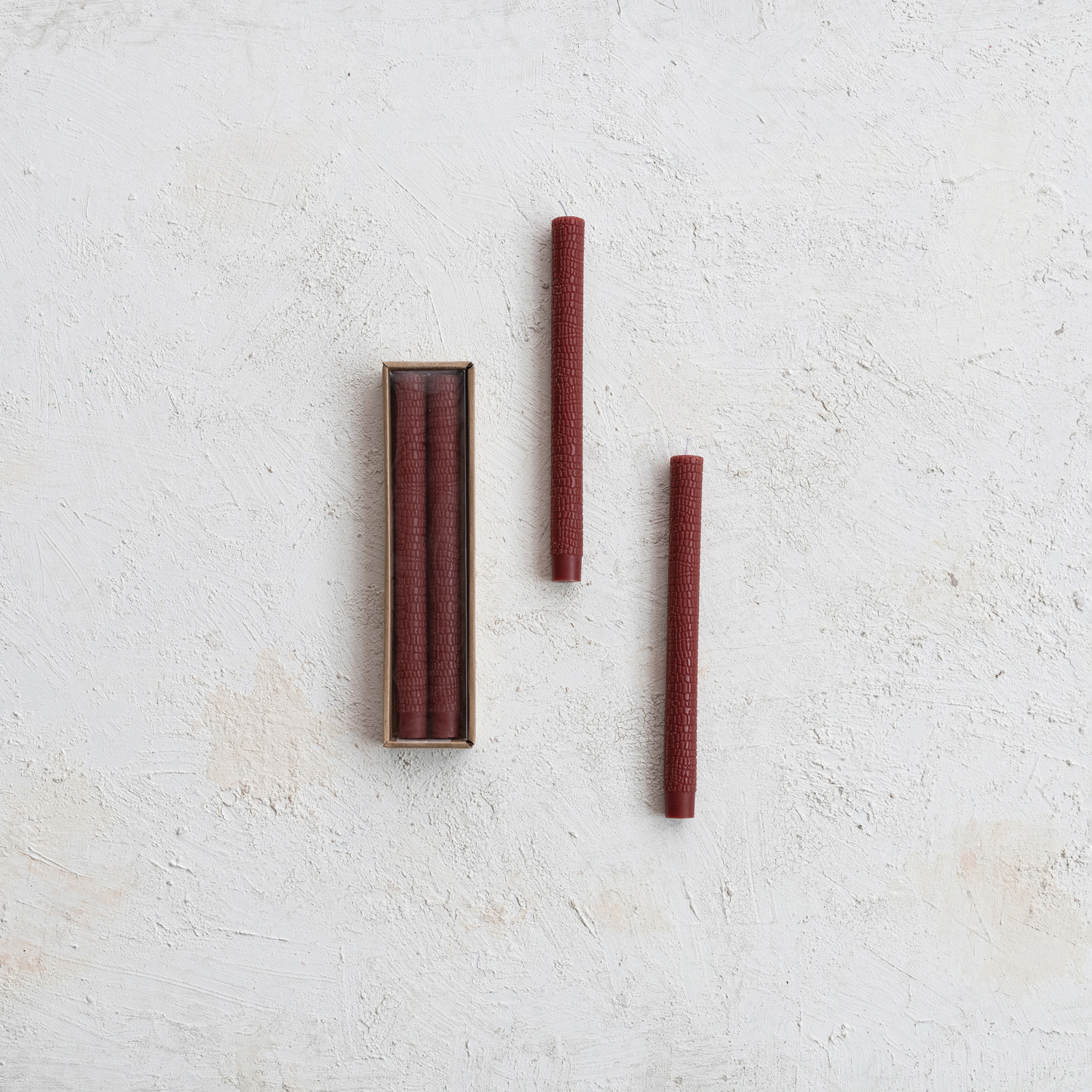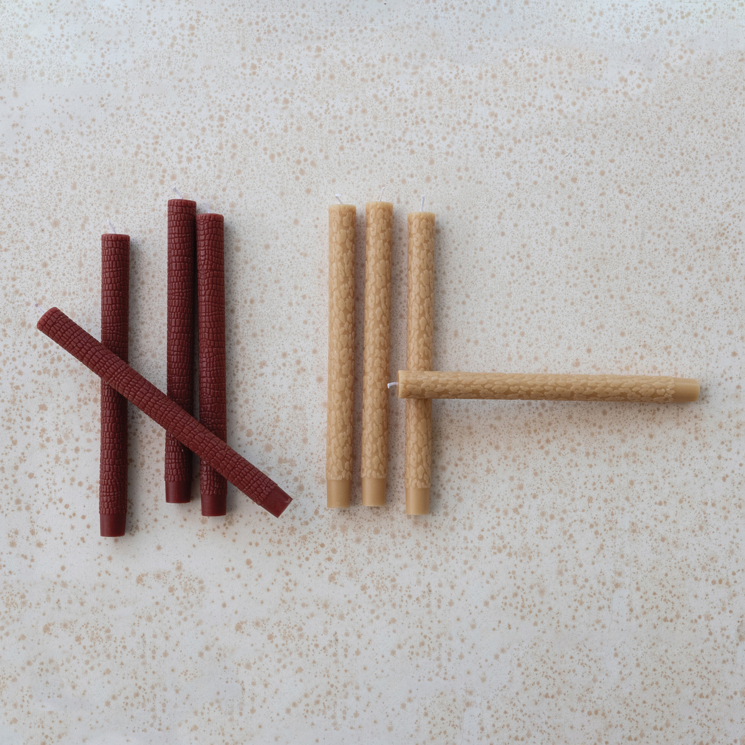 Catalog Name: 10"H Unscented Animal Print Pattern Taper Candles in Box, Brown, Set of 2 (Est. Burn Time 9 Hours)