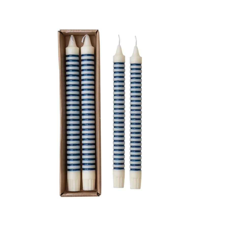 Unscented Striped Taper Candles in Box, Blue, Set of 2 (Est. Burn Time 6 Hours)