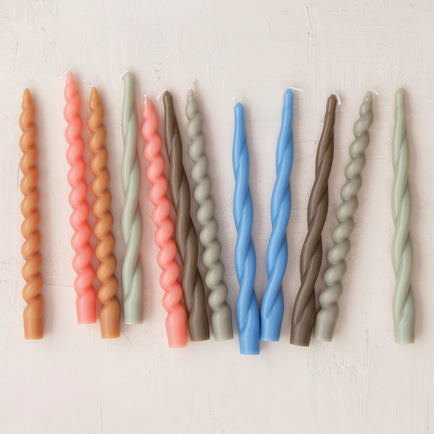 Unscented Twisted Taper Candles in Box, Grey, Set of 2 (Est. Burn Time 5 Hours)