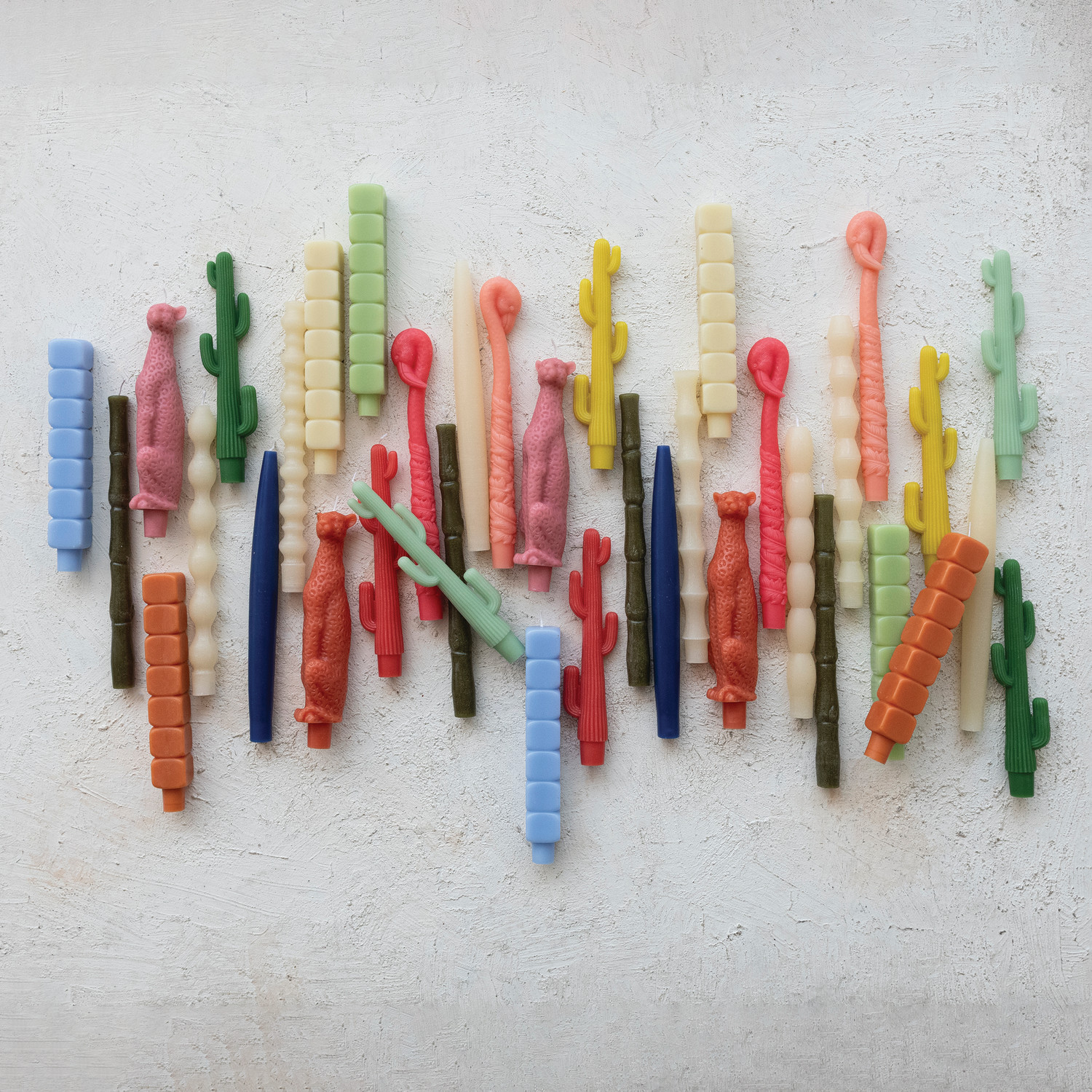 Catalog Name: 8"H Unscented Stacked Blocks Shaped Taper Candles in Box, Blue, Set of 2 (Est. Burn Time 12 Hours)