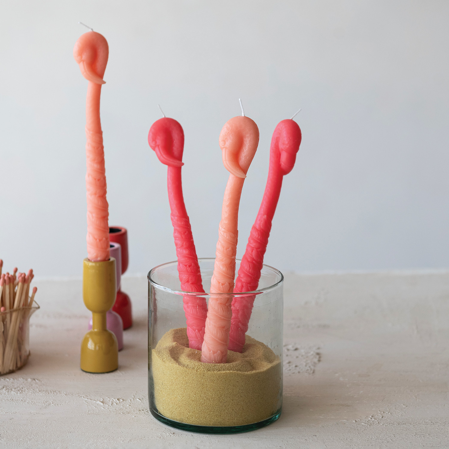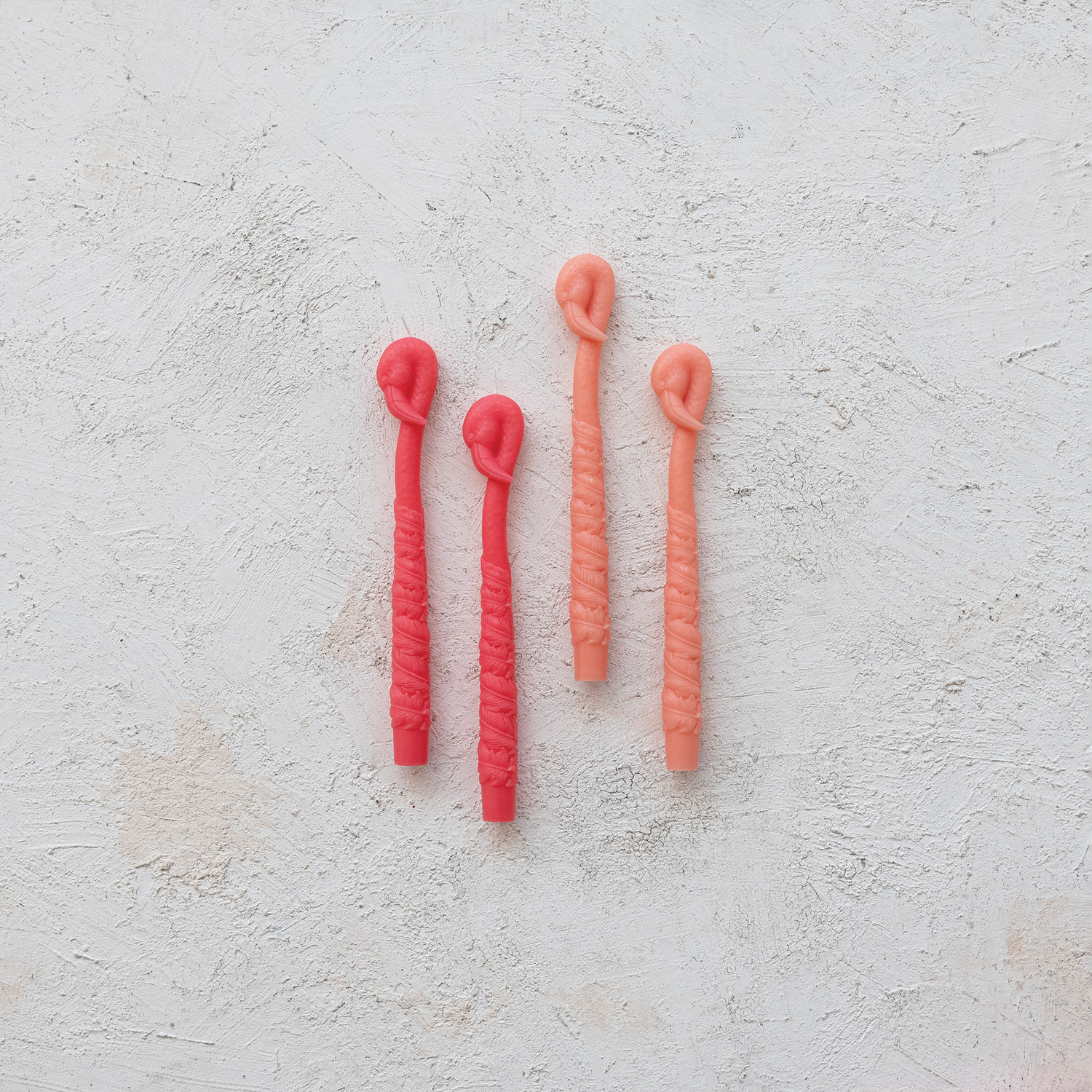 Unscented Flamingo Shaped Taper Candles in Box, Fuchsia Color, Set of 2