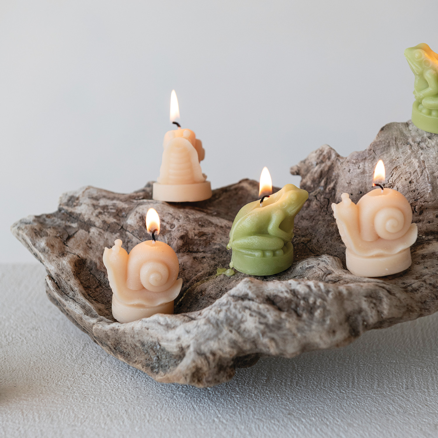 Unscented Snail Shaped Tealights in Box, Cream Color, Set of 9
