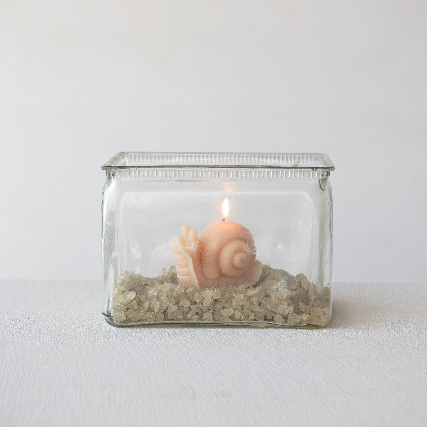 Catalog Name: 4"L x 2-1/2"W x 3"H Unscented Snail Shaped Candle, Cream Color (Est. Burn Time 4 Hours)