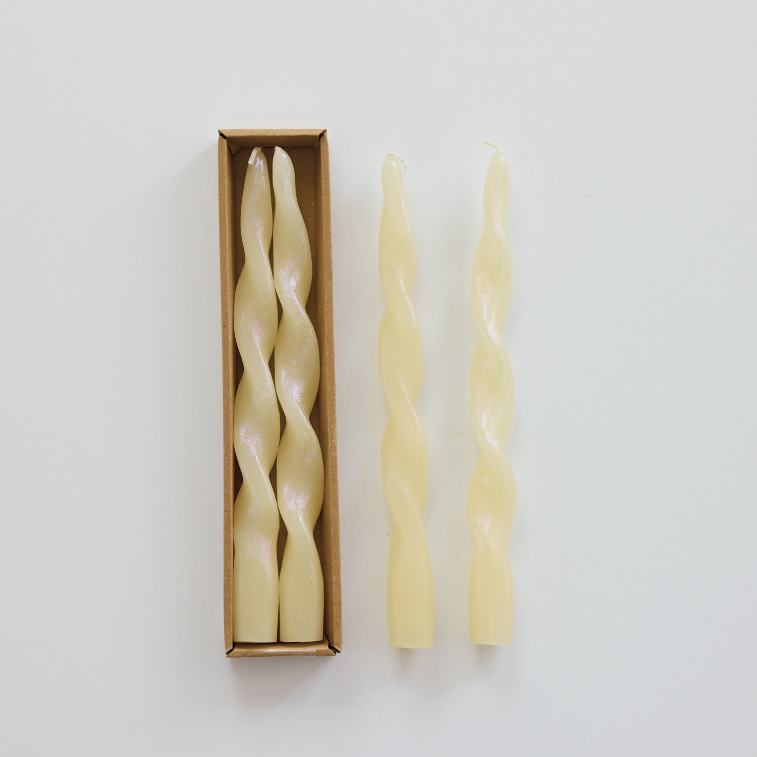 Unscented Twisted Taper Candles in Box, Iridescent Rainbow Finish, Cream Color, Set of 2