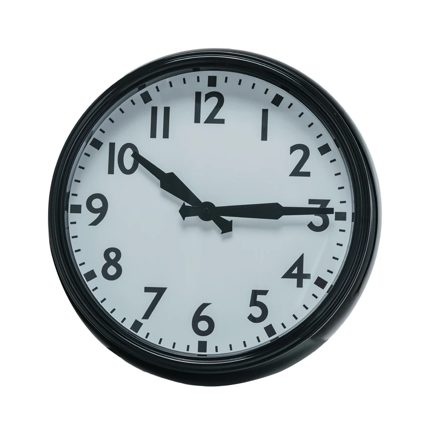 Catalog Name: 15" Round Metal Wall Clock, Black & White (Requires 1-AA Battery)