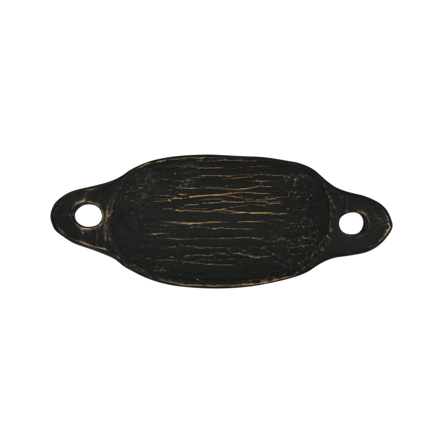 Catalog Name: Approximately 17-1/2"L x 6-3/4"W Found Decorative Wood Tray w/ Handles, Distressed Black (Each One Will Vary)