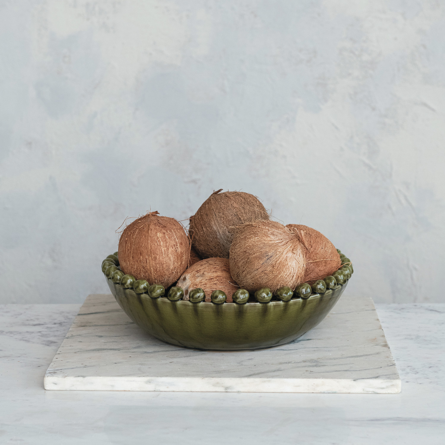 Catalog Name: 16-1/2" Round x 4-1/4"H Decorative Handmade Terra-cotta Bowl w/ Hobnail Edge, Reactive Glaze, Green (Each One Will Vary)