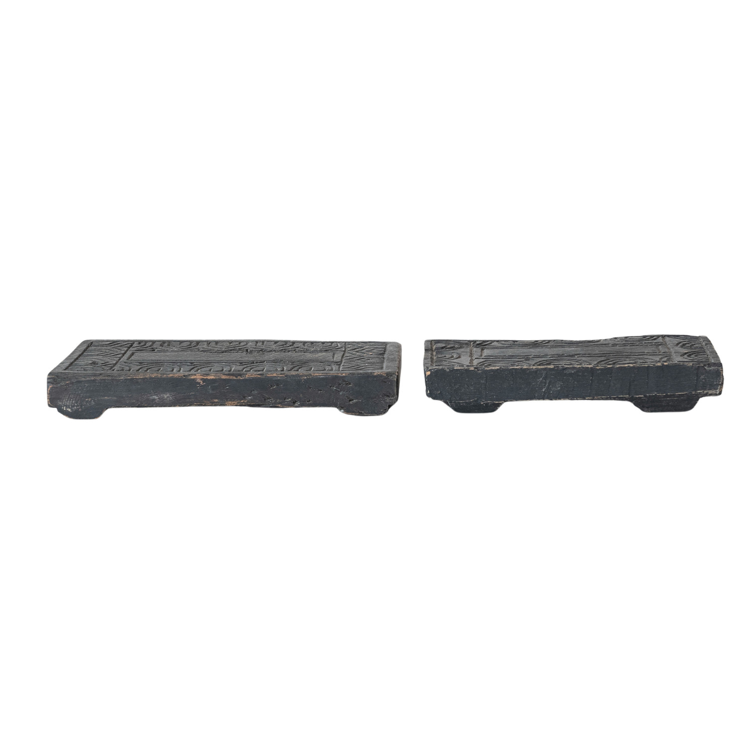 Catalog Name: Approximately 15"L x 8"W x 2-1/2"H Found Carved Wood Riser, Distressed Finish, Black (Each One Will Vary)