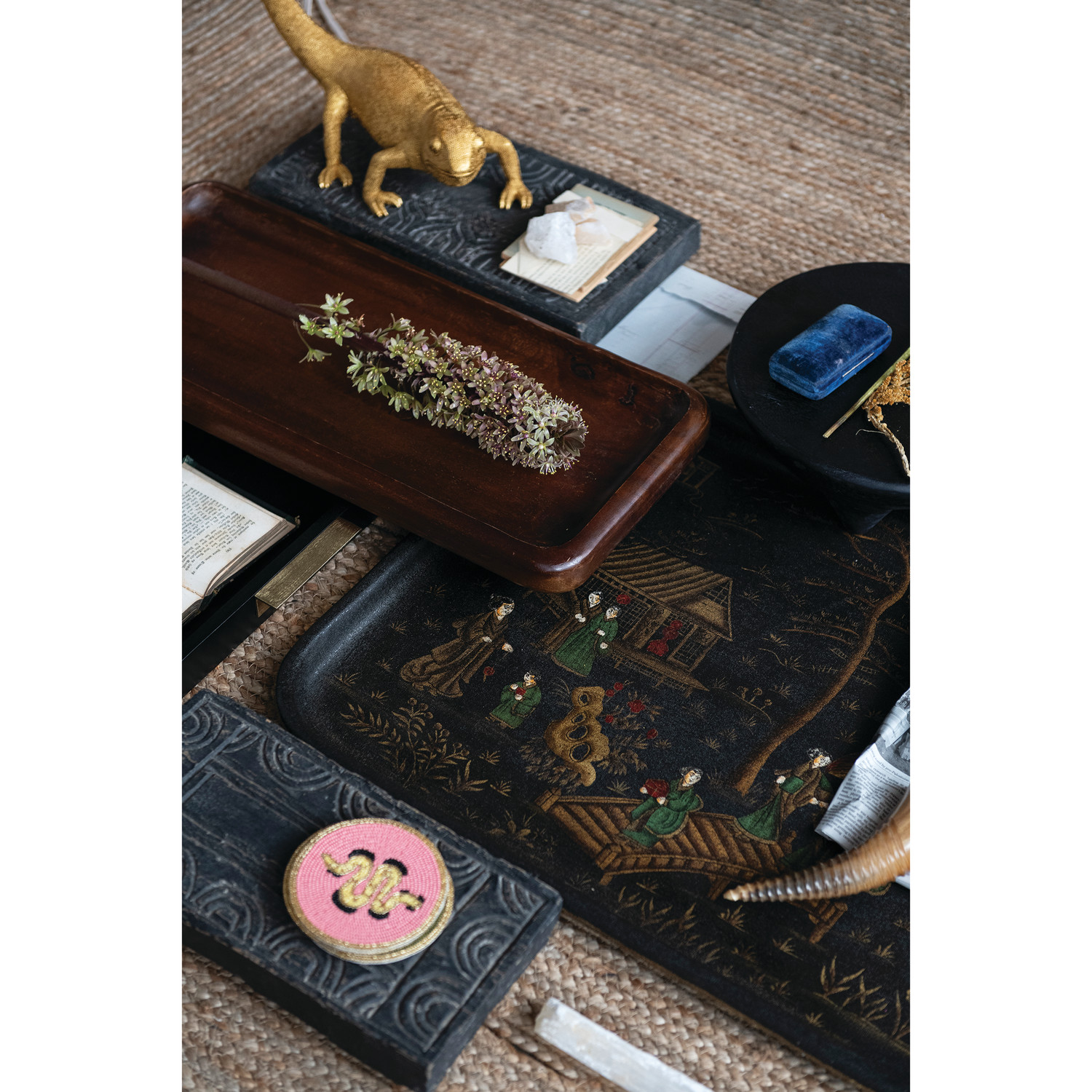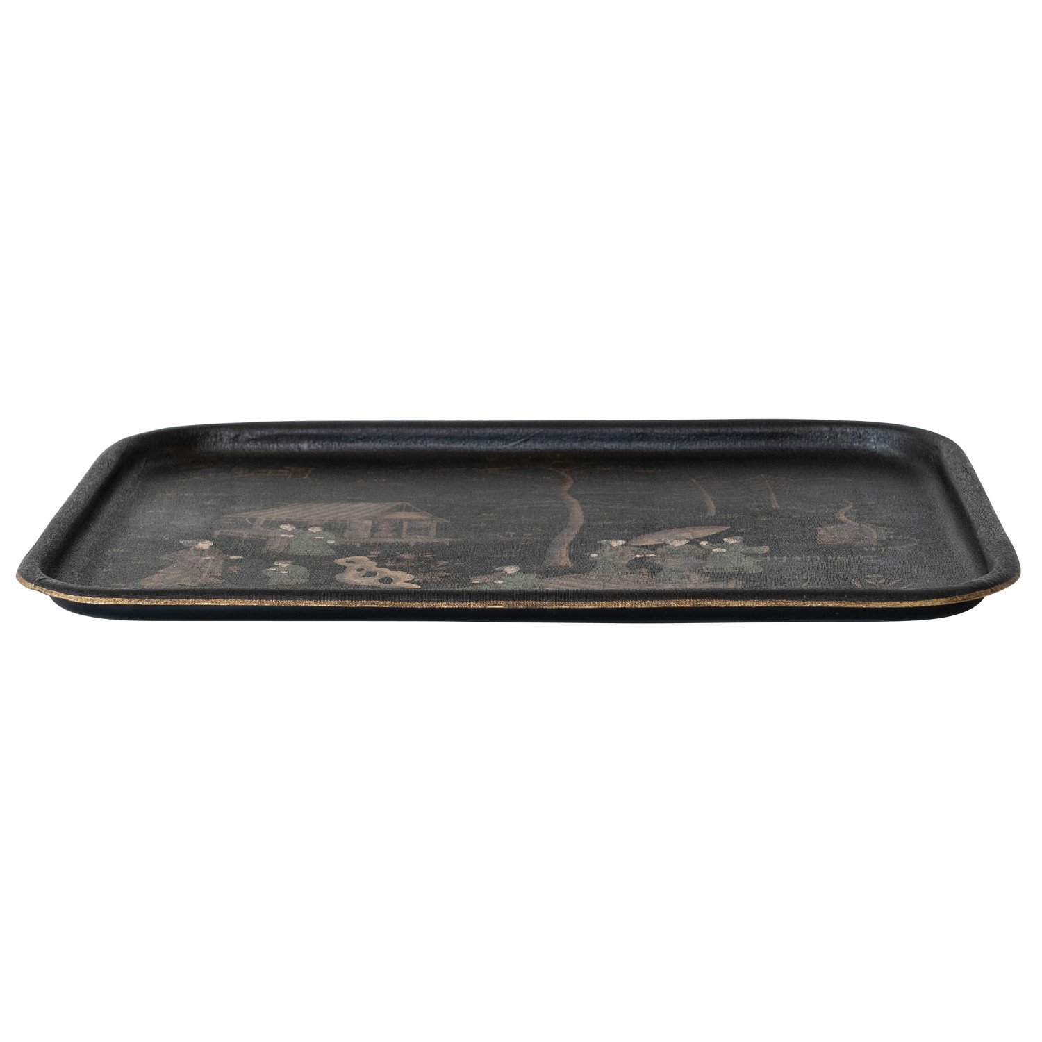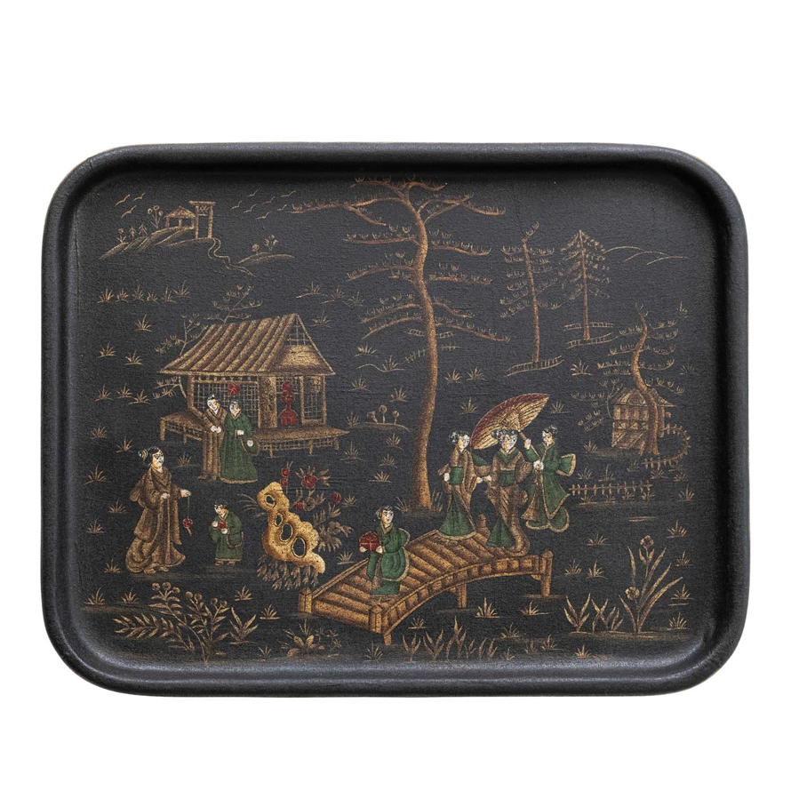 Decorative Hand-Painted Metal Tray with Chinoiserie