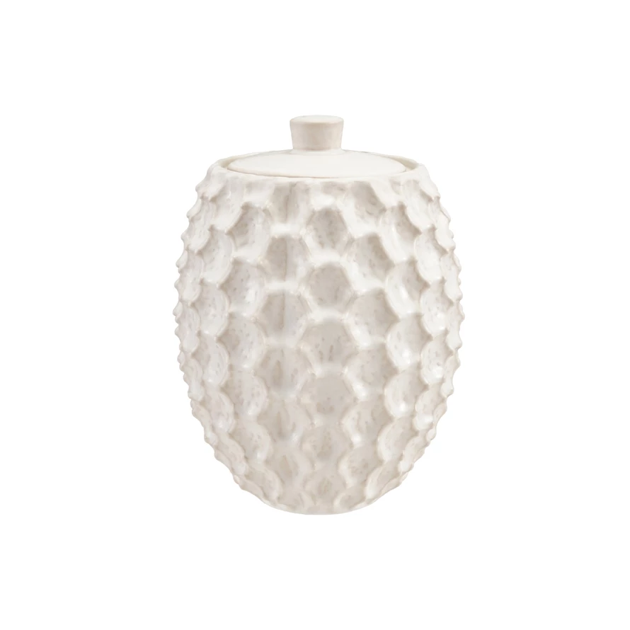 Catalog Name: 7" Round x 9-1/4"H Stoneware Sculptural Jar, Matte White