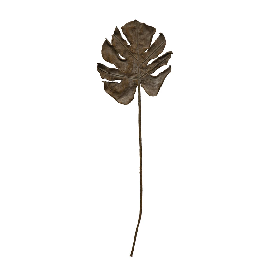Faux Philodendron Split Leaf, Plaster Finish, Dark Olive