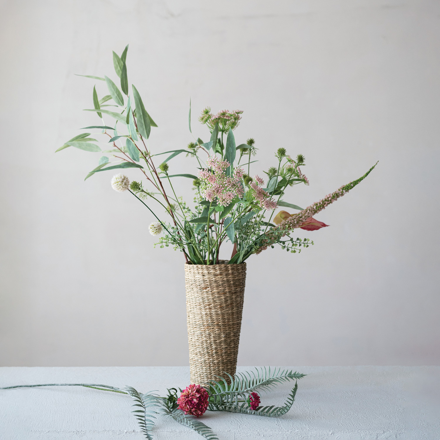 Catalog Name: 40"H Faux Flower Bouquet Wrapped in Paper & Tied w/ Cotton Bow (Contains 8 Pieces)