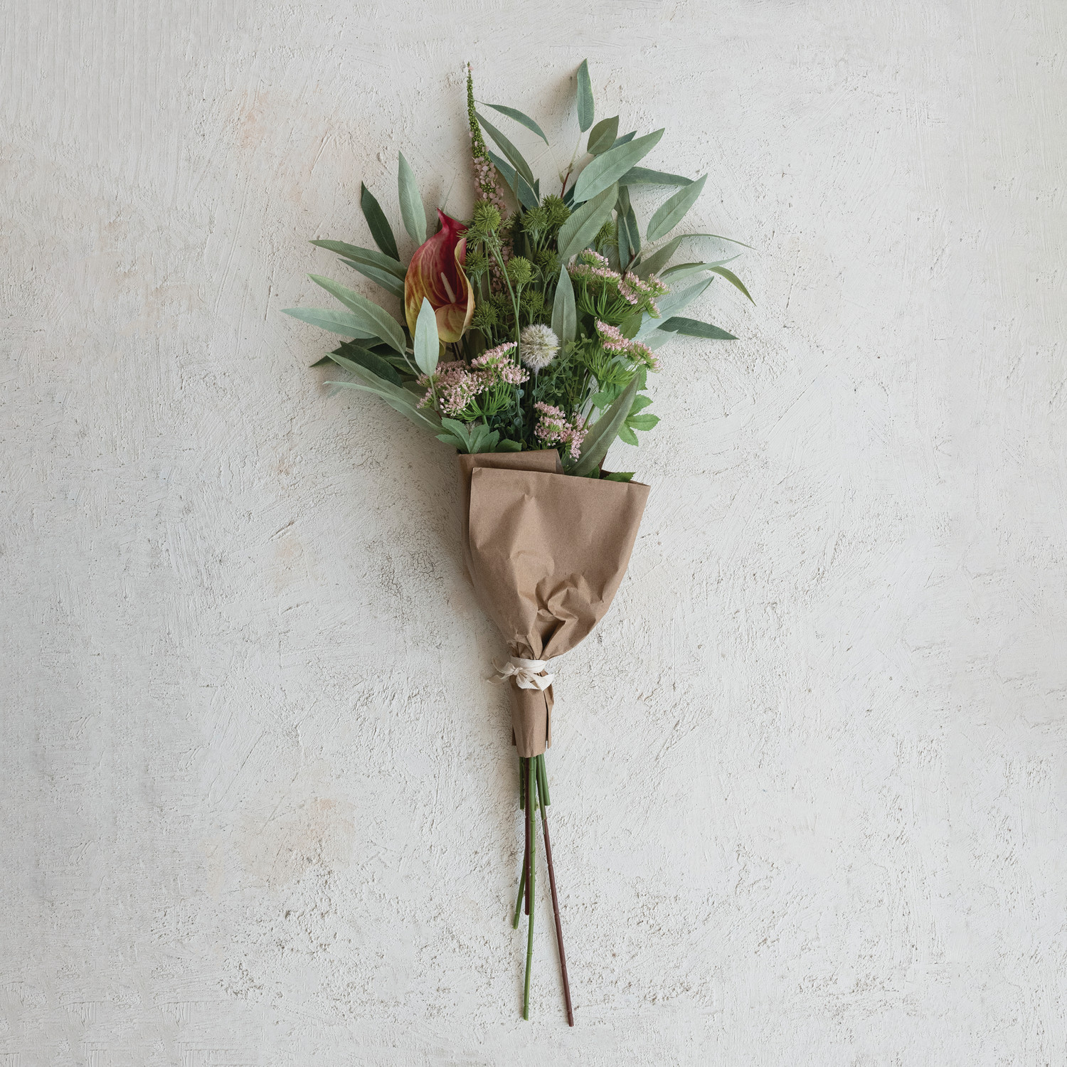 Faux Flower Bouquet Wrapped in Paper & Tied with Cotton Bow (Contains 8 Pieces)