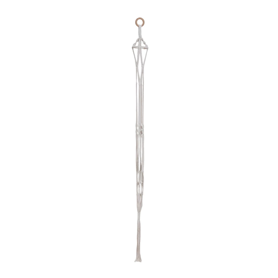 Catalog Name: 2" Round x 57"H Cotton Macrame Plant Hanger w/ Wood Ring, Natural
