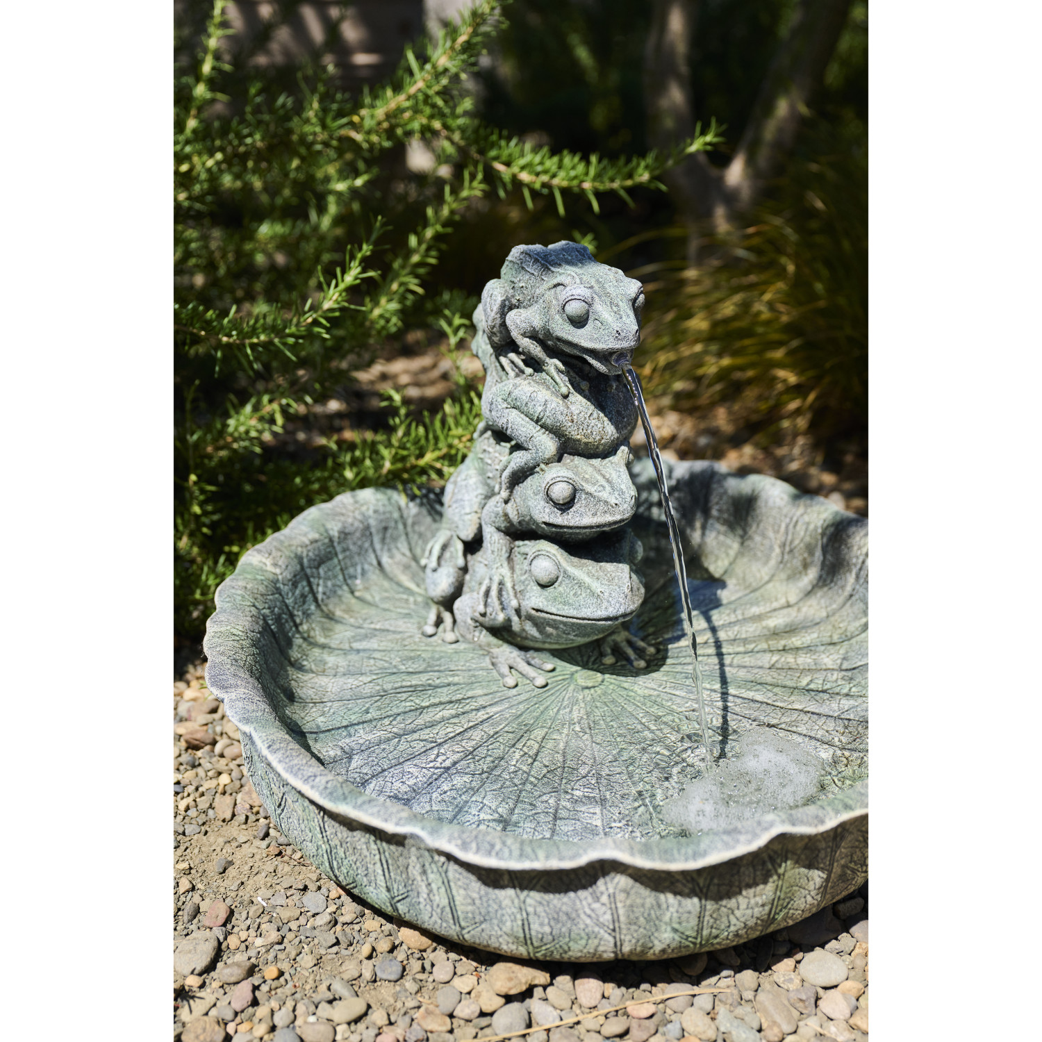 Resin Lotus Leaf Shaped Fountain with Frogs, 6' Cord, Verdigris Finish (Includes Pump Kit)