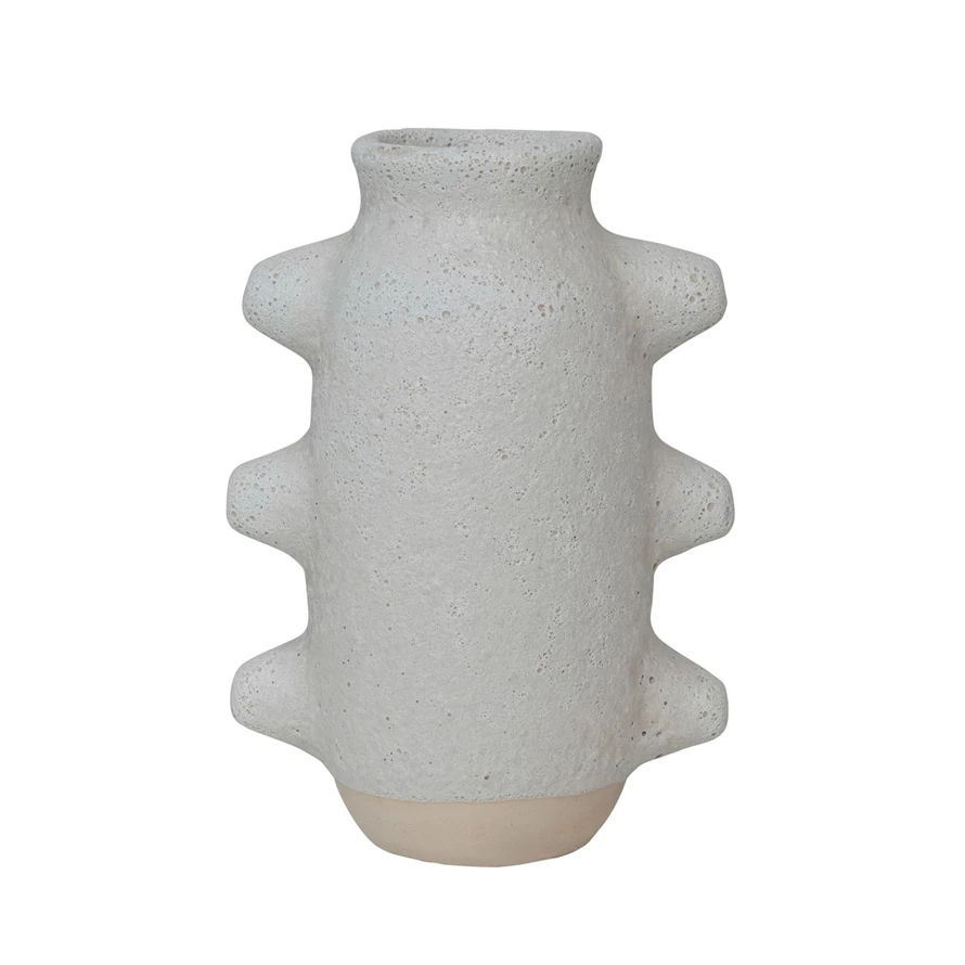 Catalog Name: 6-1/4"L x 4-1/4"W x 9"H Stoneware Vase, Volcano Finish, White