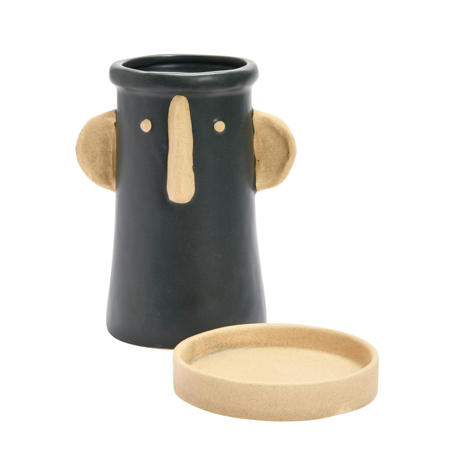 This playful stoneware planter showcases a minimalist 2-tone face in a stylish matte finish.