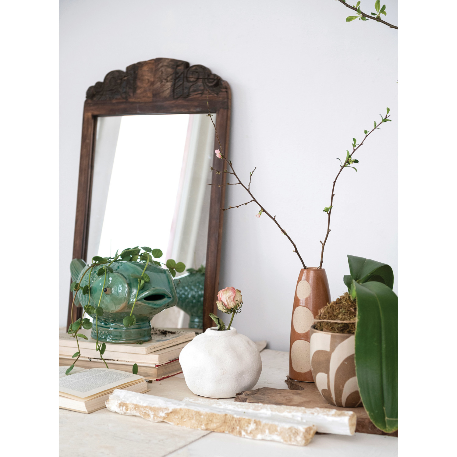 This stoneware fish planter with debossed design and reactive glaze in turquoise is a lovely piece that can brighten up any space. This planter has a fish shape that gives it a whimsical and charming look. The planter has a debossed design on its surface that creates a textured and elegant effect. The planter has a turquoise color that is vibrant and soothing. The planter has a reactive glaze that adds a beautiful variation of colors. The planter can be used to display plants, flowers, herbs, or succulents, either indoors or outdoors. However, it does not have drainage holes, so it is recommended to use it with a liner or a pot. The planter is made of high-quality stoneware that is durable and easy to clean. It measures 17.13 inches in length, 7.68 inches in width, and 7.5 inches in height, with an opening of 6 inches in length and 4.5 inches in width. This stoneware fish planter with debossed design and reactive glaze in turquoise is a stylish and elegant piece that can enhance any home decor with its simple and refined style. A unique and charming planter with a fish shape and a debossed design on its surface in a turquoise color. Perfect for adding a touch of playfulness and seaside flair to any beach house, tropical-inspired interior, or aquatic-themed space. Can be used to display plants, flowers, herbs, or succulents. Made of stoneware.