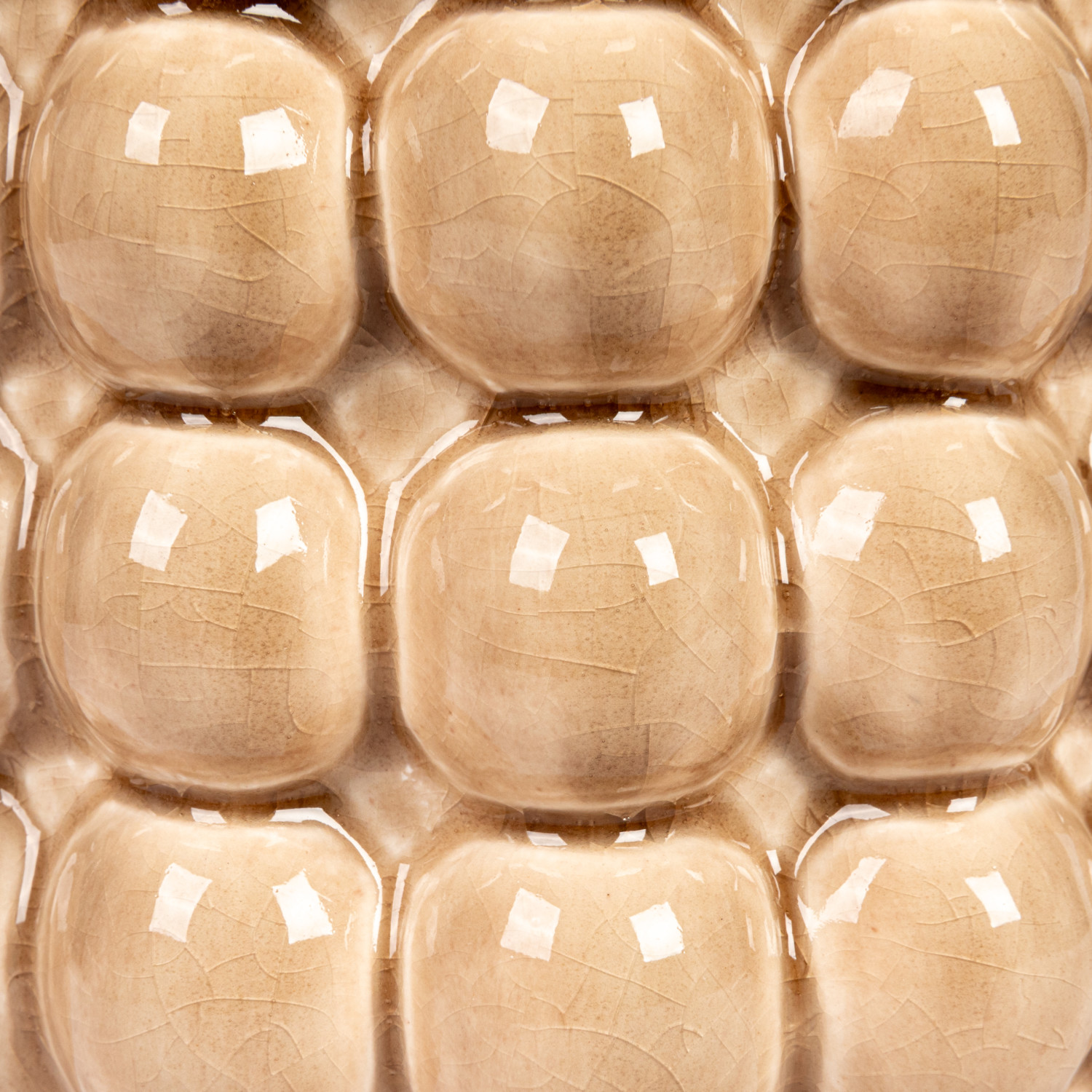 This tan stoneware planter with raised dots is a beautiful and functional piece that will enhance home decor. This planter is made of durable and high-quality stoneware that has a glossy finish and a textured surface of raised dots. The warm tan color and the raised dots create a rustic and cozy look that complements any indoor or outdoor space. The planter is designed to hold a 4-inch potted plant, making it suitable for small to medium-sized plants such as succulents, herbs, or flowers. Use this planter as a standalone piece or pair it with other planters to create a stunning display. The planter measures 6 inches in diameter and 5 inches in height, making it a perfect size for any tabletop, shelf, or windowsill. This tan stoneware planter with raised dots is a great way to add some charm and personality to the home. A round stoneware planter with a textured surface of raised dots in a warm tan color. A great choice for adding some rustic charm and natural beauty to any indoor or outdoor space. It is suitable for small to medium-sized plants. Made of stoneware.