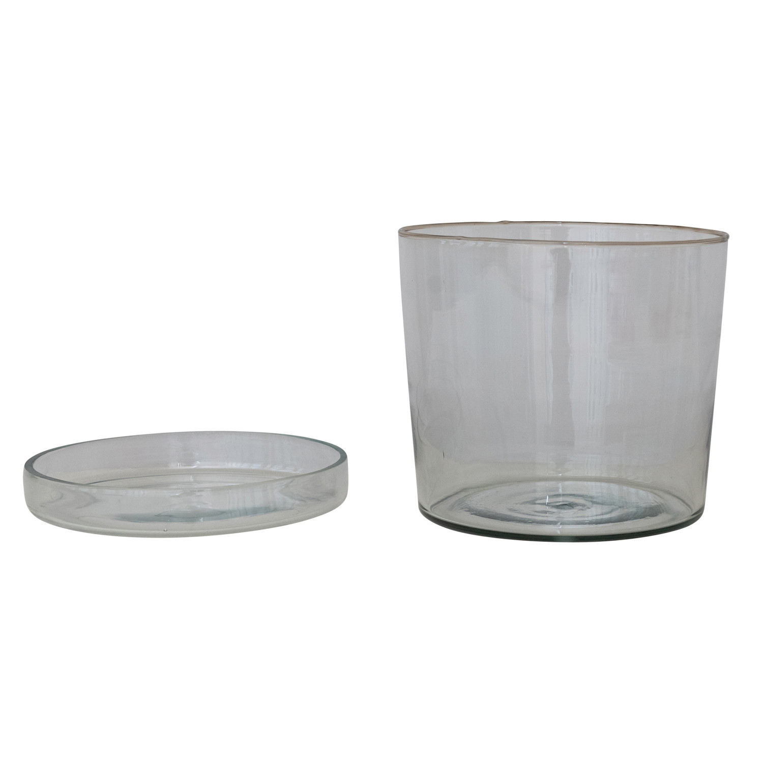 Catalog Name: 8" Round x 7-1/4"H Hand-Blown Recycled Glass Planter w/ Drainage Hole & Saucer, Set of 2 (Holds 7" Pot)