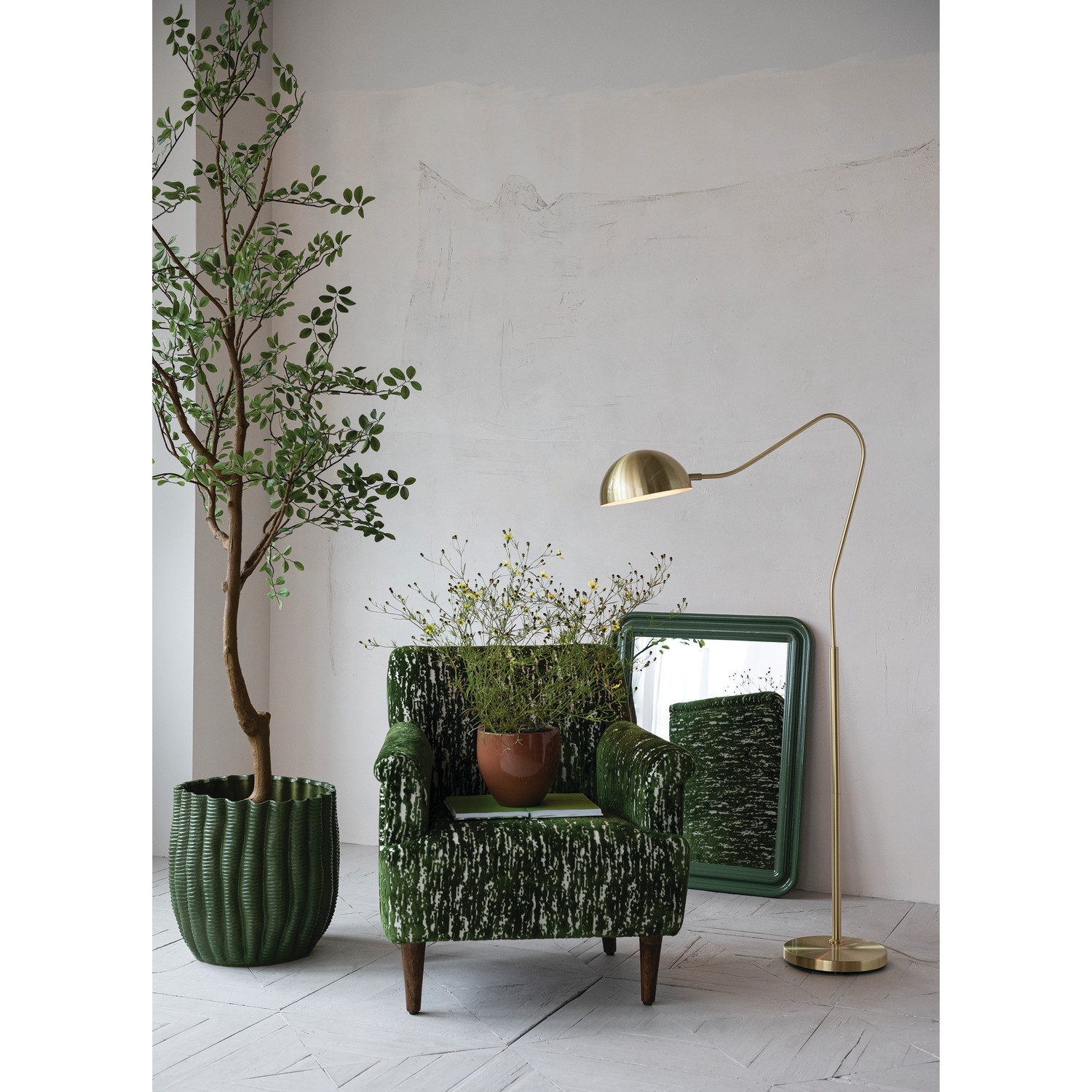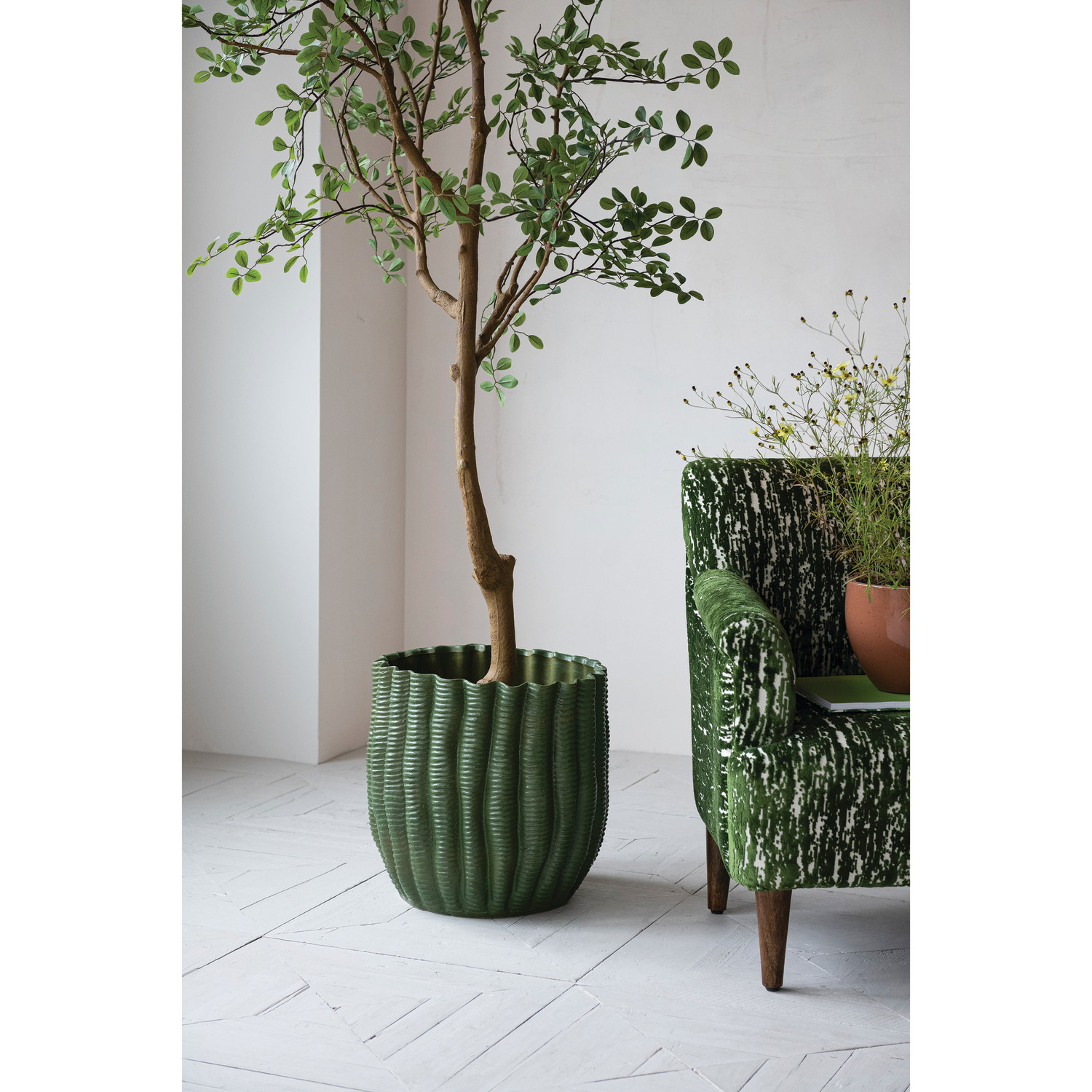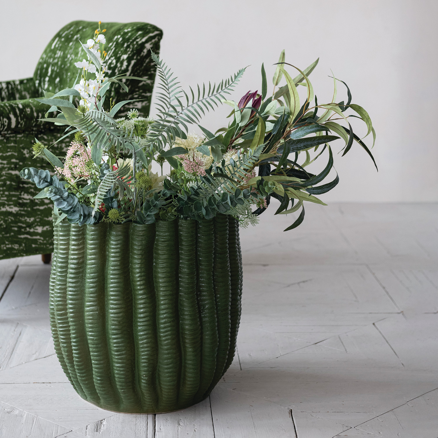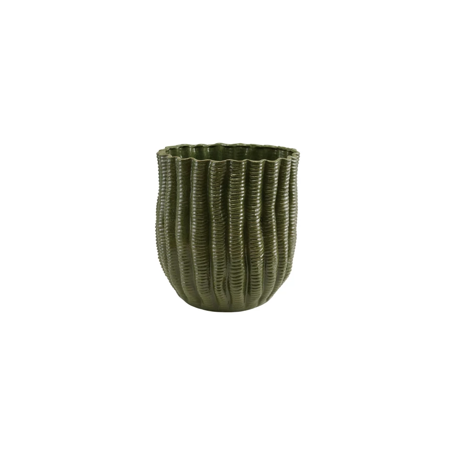 Stoneware Fluted Planter, Green (Holds 10" Pot)