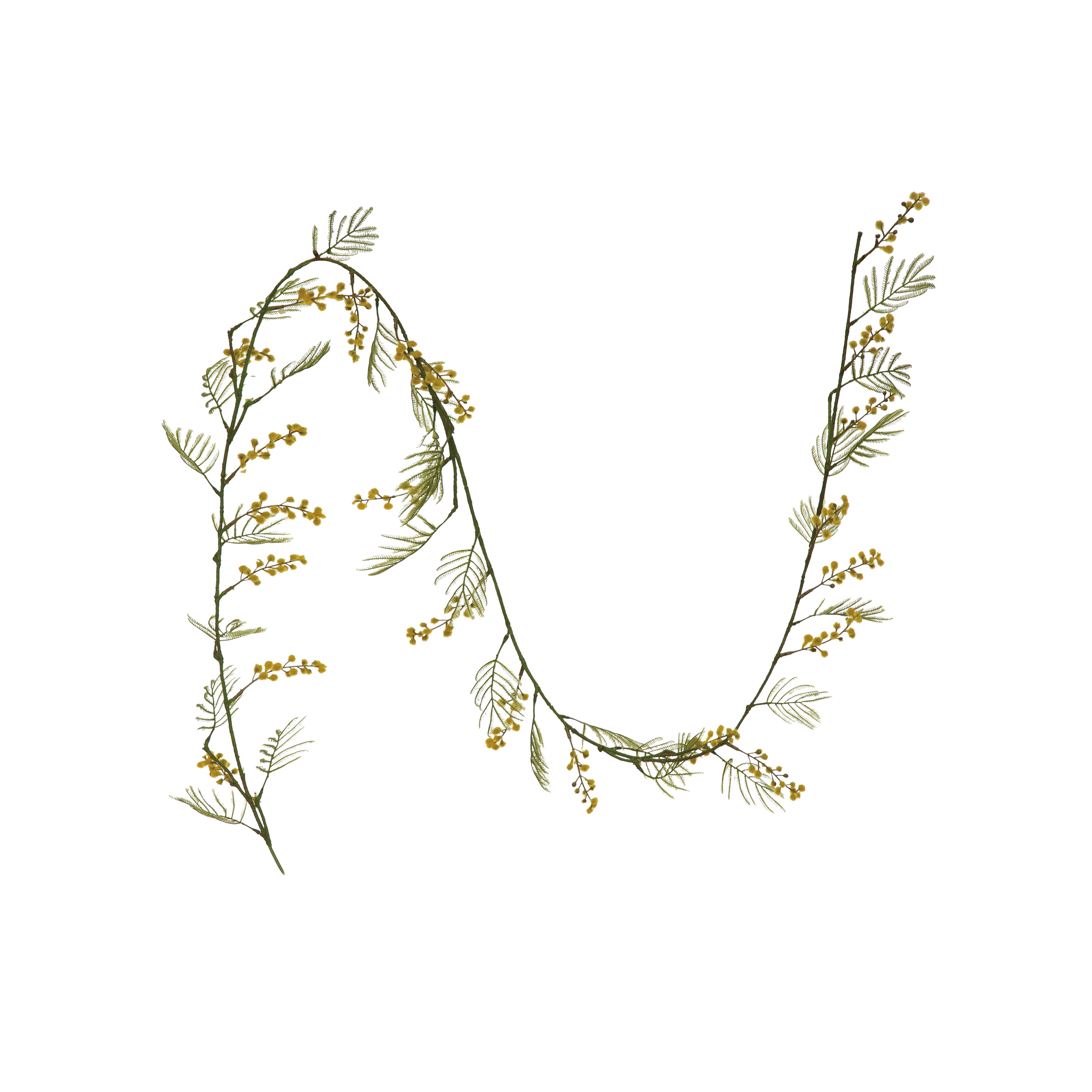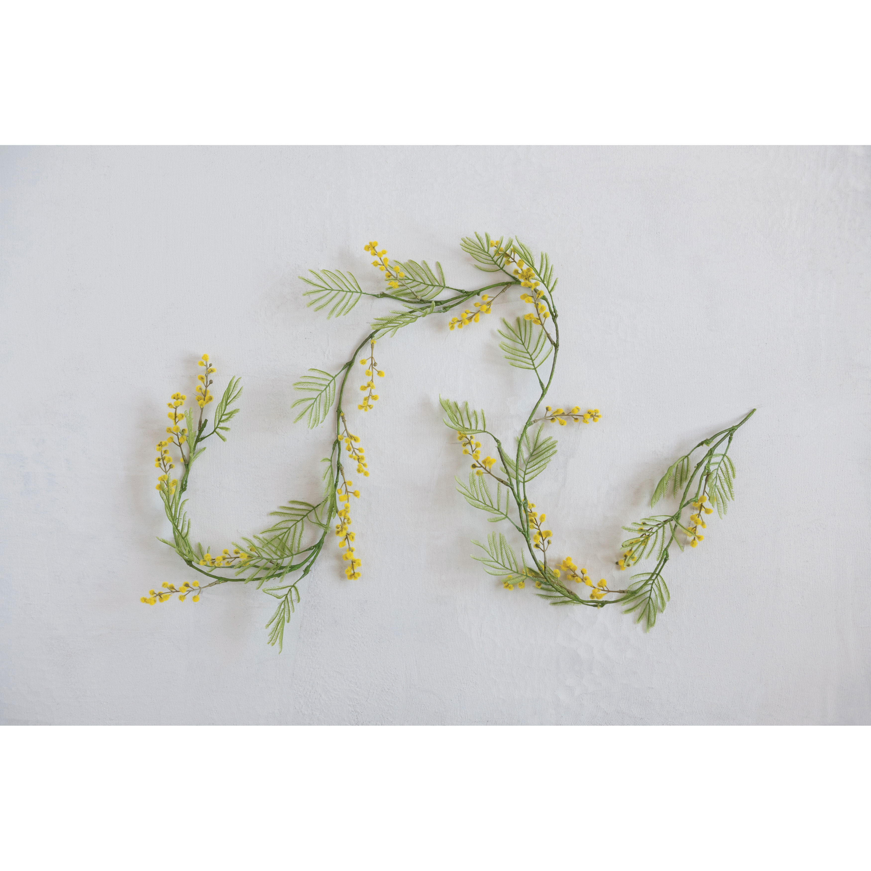 This whimsical decorative garland showcases striking faux Craspedia Billy Buttons on a green willowy vine. Decorative faux garland with yellow flowers. Add a touch of natural beauty to any gathering space with this beautiful faux flora. Display indoors to instantly brighten any living space with low maintenance natural flair.