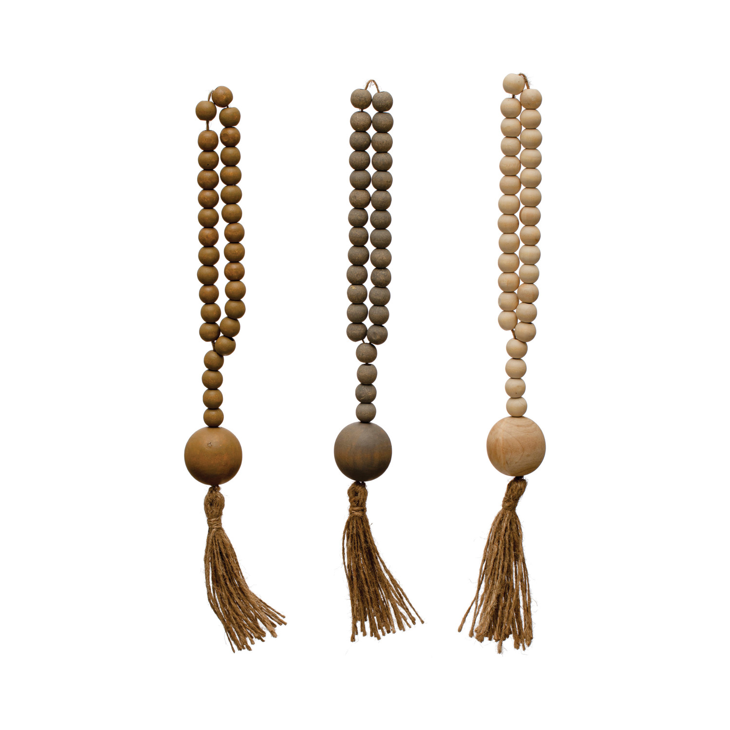 Wood Beads w/ Jute Rope Tassel, 3 Colors