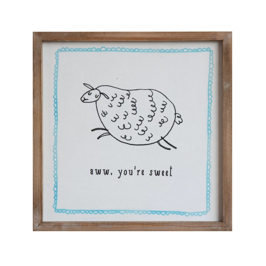 Catalog Name: 11-3/4" Square Wood Framed Wall Décor w/ Lamb "Aww, You're Sweet"