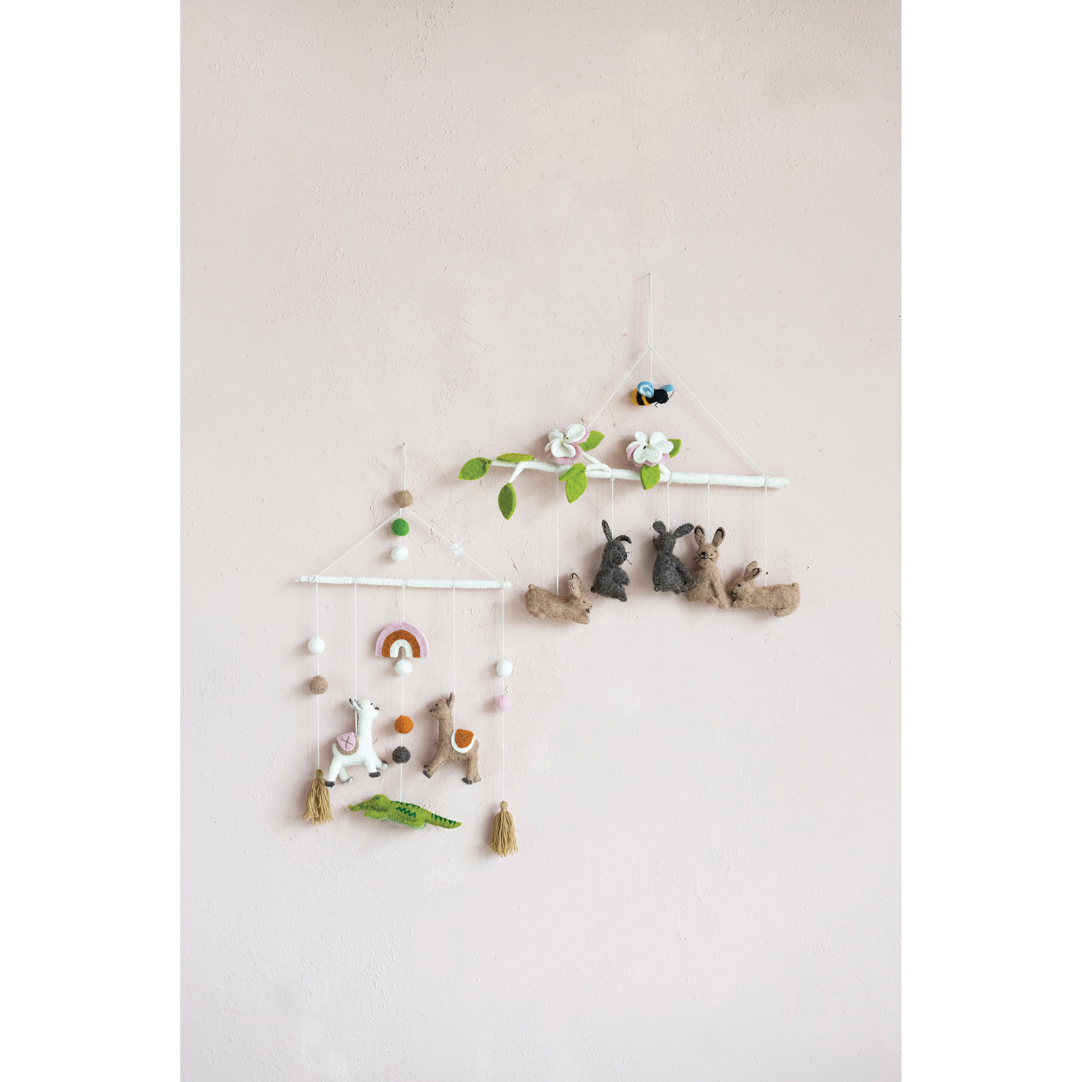 Wool Felt Mobile with Llamas, Alligator and Tassels